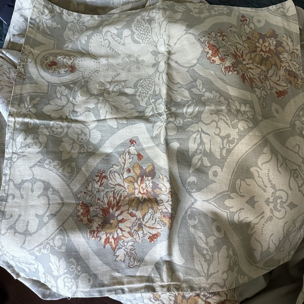 This beautiful two-piece duvet +one pillowcase cover set from Pottery Barn features a stunning floral medallion pattern that will add a touch of elegance to any queen-sized bed. Made from a luxurious blend of linen and cotton, this pre-owned duvet cover is machine washable for easy care. The buttons provide a secure closure and the set includes one duvet cover. The multicolor design will complement any bedroom decor and the set is perfect for those who love flowers and a touch of nature in their space. The set includes a stylish duvet cover and is suitable for machine washing cold. The Pottery Barn Camilla model is a must-have for anyone looking to add a touch of sophistication to their bedroom.