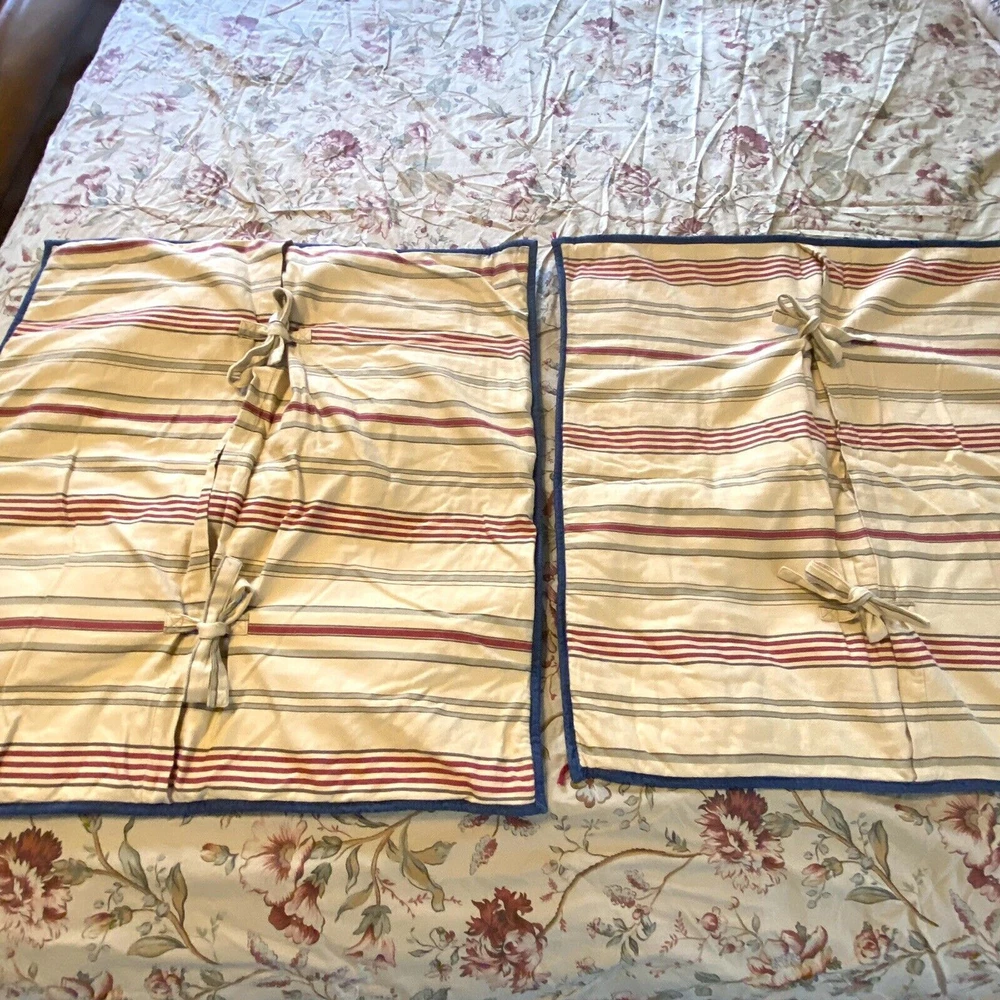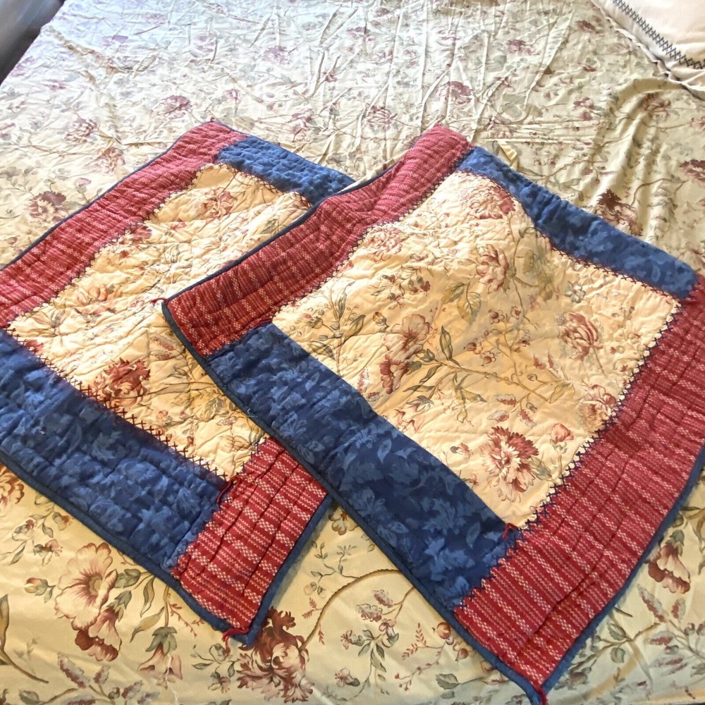 <![CDATA[<div>POTTERY BARN Bedding Set. Red Blue Cream Floral. Includes Queen Duvet, 2 Euro Shams & Zip Bolster Pillow Cover. 100% cotton. Duvet has button closure. Euro shams have striped back and ti...