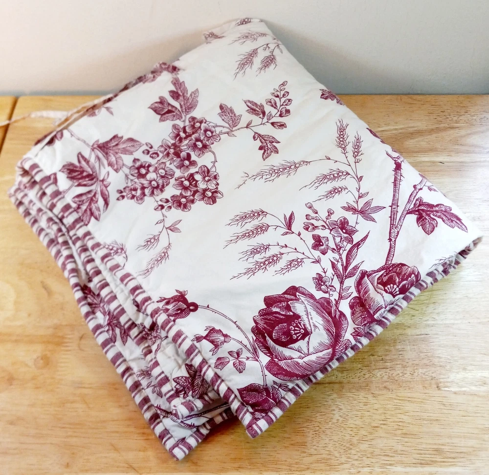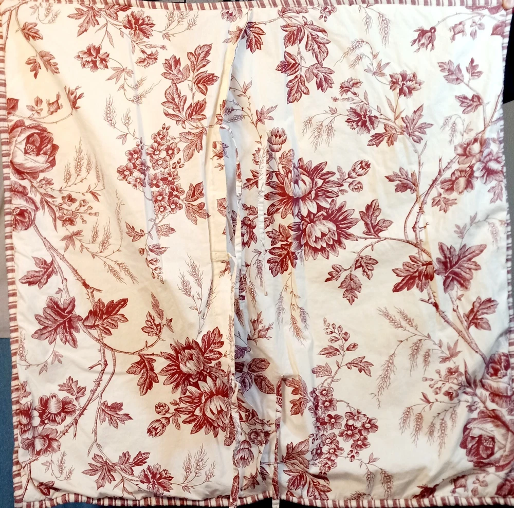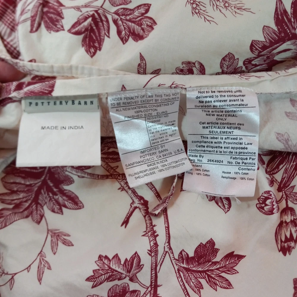 Pottery Barn Quilted Pillow Cover / Sham in Red, Tan, and White Floral / Plaid. Ha a Tie Closeure. Measures 27" Square. Condition is Used, Excellent, with No Damage, No Smell, and Minimal Wear. See Ph...