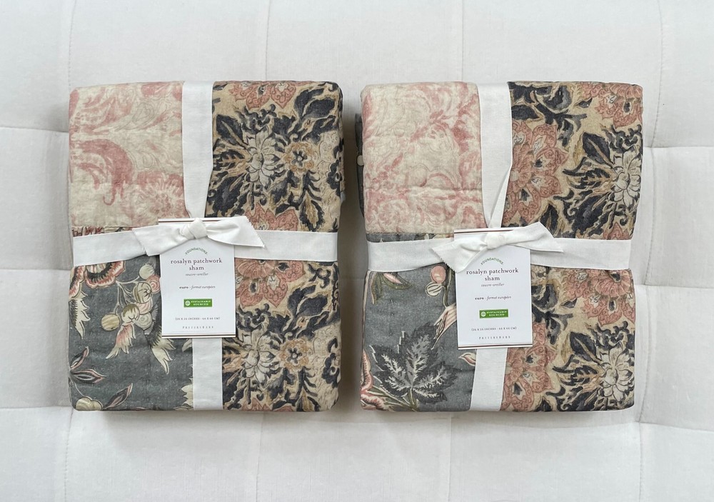Pottery Barn Rosalyn Patchwork Euro Shams ~Set of Two~ Multicolor New with tags Brand new in manufacturers original packaging 100% Cotton Machine wash Euro Sham 26" Pet & Smoke Free Ships within 1 bus...