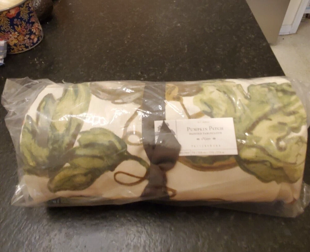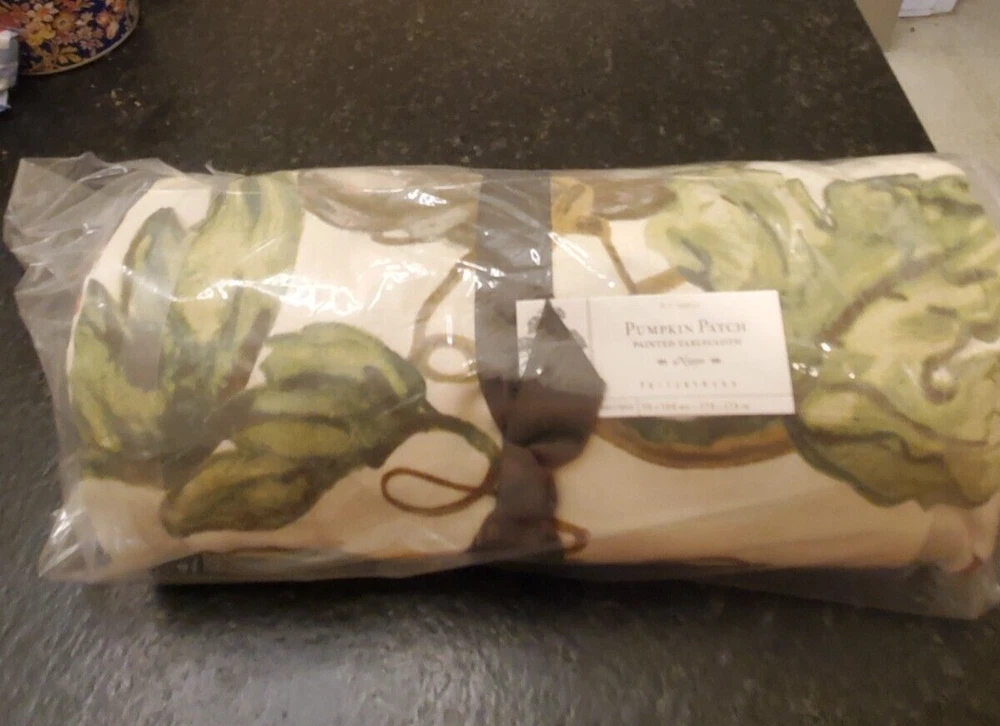 Pottery Barn Rustic Garden Tablecloth. Featuring a vibrant Garden Pumpkin pattern, this multicolored cotton tablecloth measures 70" x 108", perfectly sized for a classic rectangle table. It's a delightful addition to any dining space, bringing a touch of the outdoors in. Crafted for both beauty and functionality, this tablecloth is machine washable, ensuring easy care and lasting use. Botanical motif perfect for any season. The colors are Greens, cranberry, loden green and twig on an ivory background. Photos are part of description. See my other listings for more High end quality linens for the Table and bedroom. I have 3 of these which could be used for a beautiful garden party large get together.