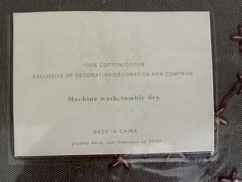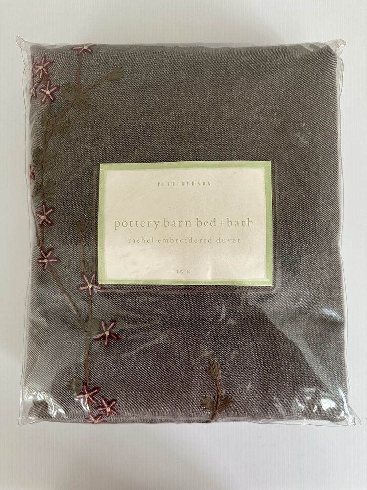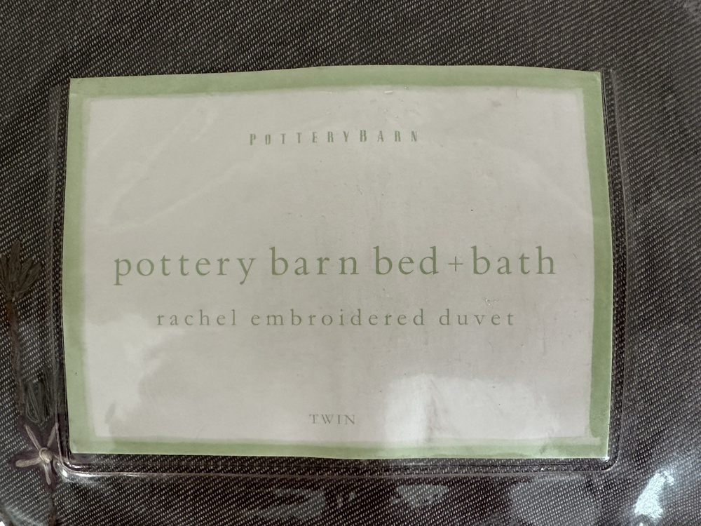 Pottery Barn ~ RACHEL embroidered TWIN duvet. NEW (old stock) in original packaging. Hard to find older pattern in new condition. Brown denim type material with beautiful embroidered flowers with vines. 100% cotton. Machine wash. I have two coordinating EURO shams on another listing if interested. Any questions, please ask prior to purchase. Please check out my other treasures! New and hard to find items listed weekly. I usually offer 4 shipping options, so please compare and select the best option for you. I am always happy to combine items to save you money on shipping costs. Please request PRIOR to making payment. Thank you for browsing my store, I greatly appreciate it!