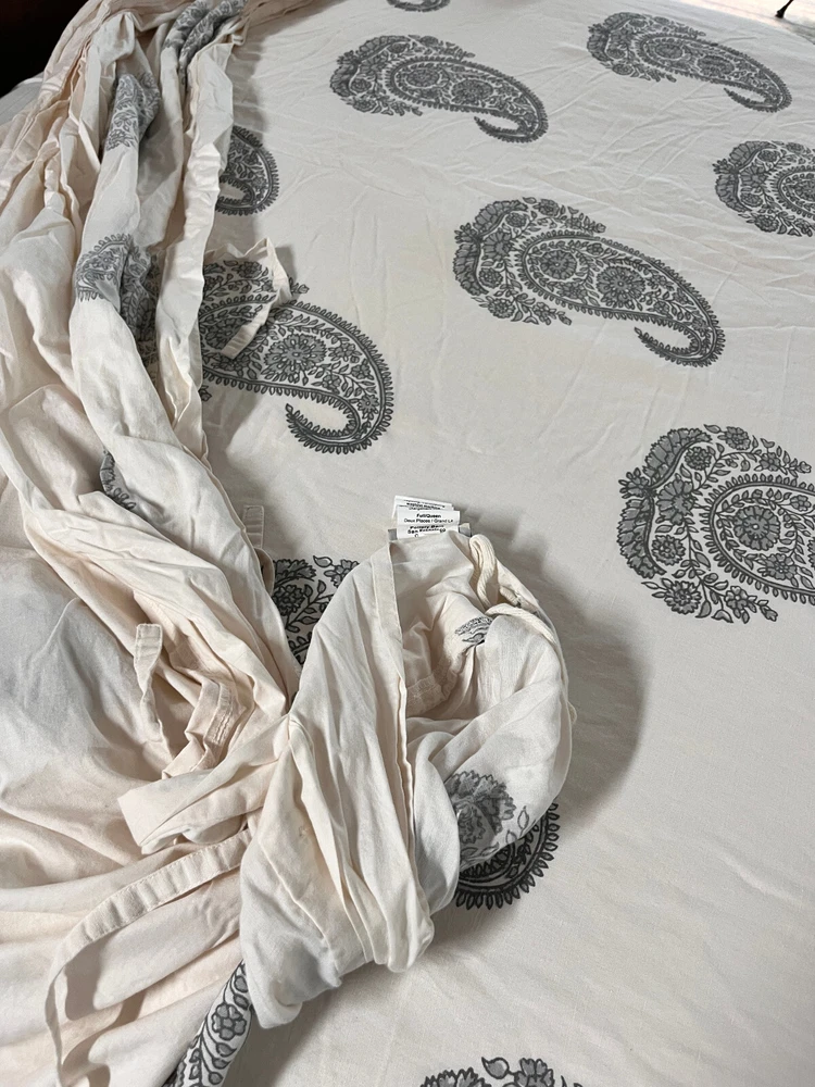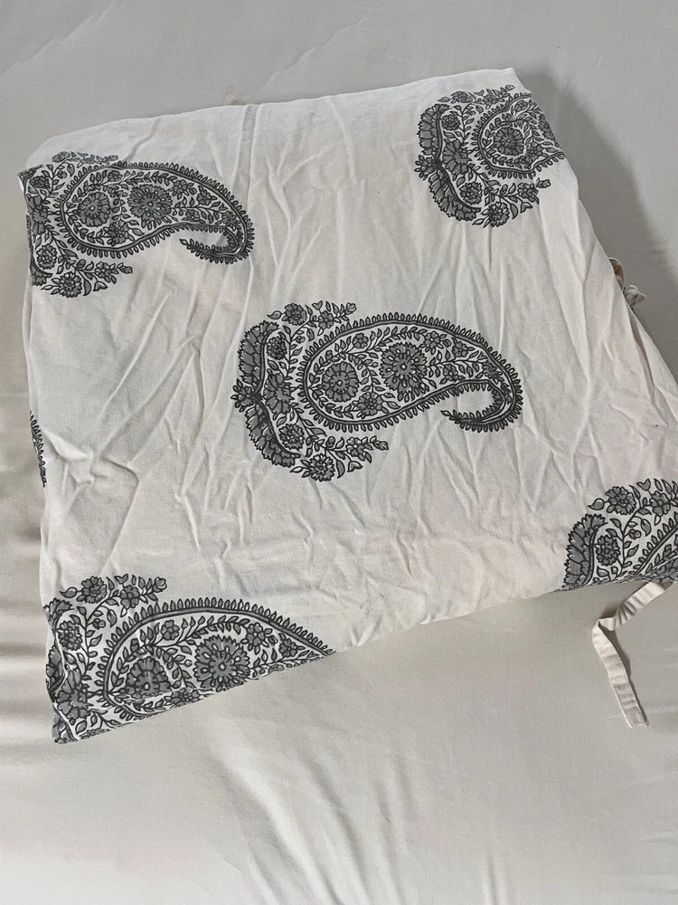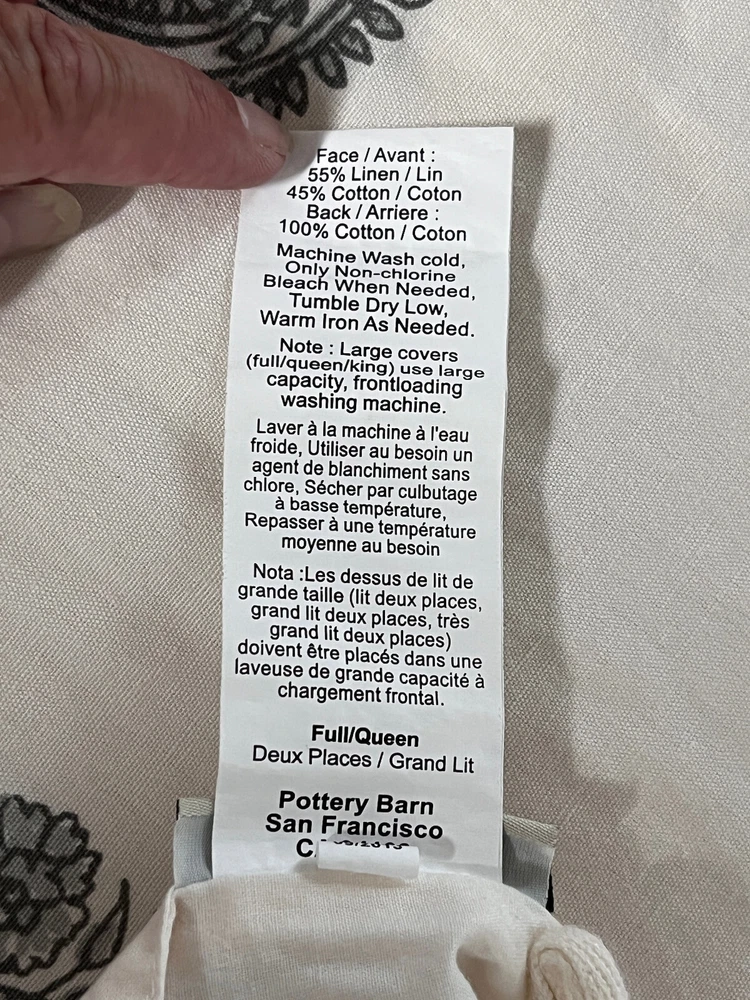 This listing is for a Pottery Barn Rayna Gray Cream Paisley Duvet Cover in a size Full/Queen. There are no rips spots discoloration or holes. Wonderful condition. Front: 55% Linen 45% Cotton Back: 100% Cotton I do my best to accurately describe each item that I list. If you have any questions or concerns about an item, feel free to contact me and I will get back to you promptly. I will happily provide additional photos upon request. Thanks for taking a look.