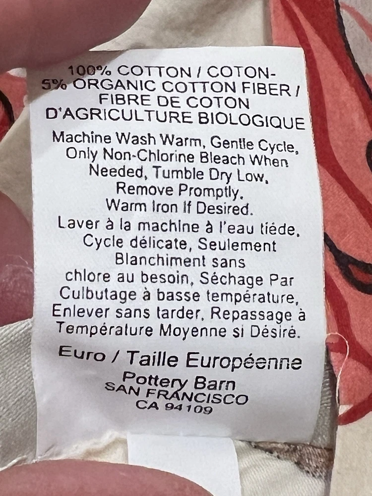 Estate find. I don’t believe they’ve ever been used. One standard sham in original package. Comes with queen duvet, 2 standard shams and 2 euro shams. No returns.