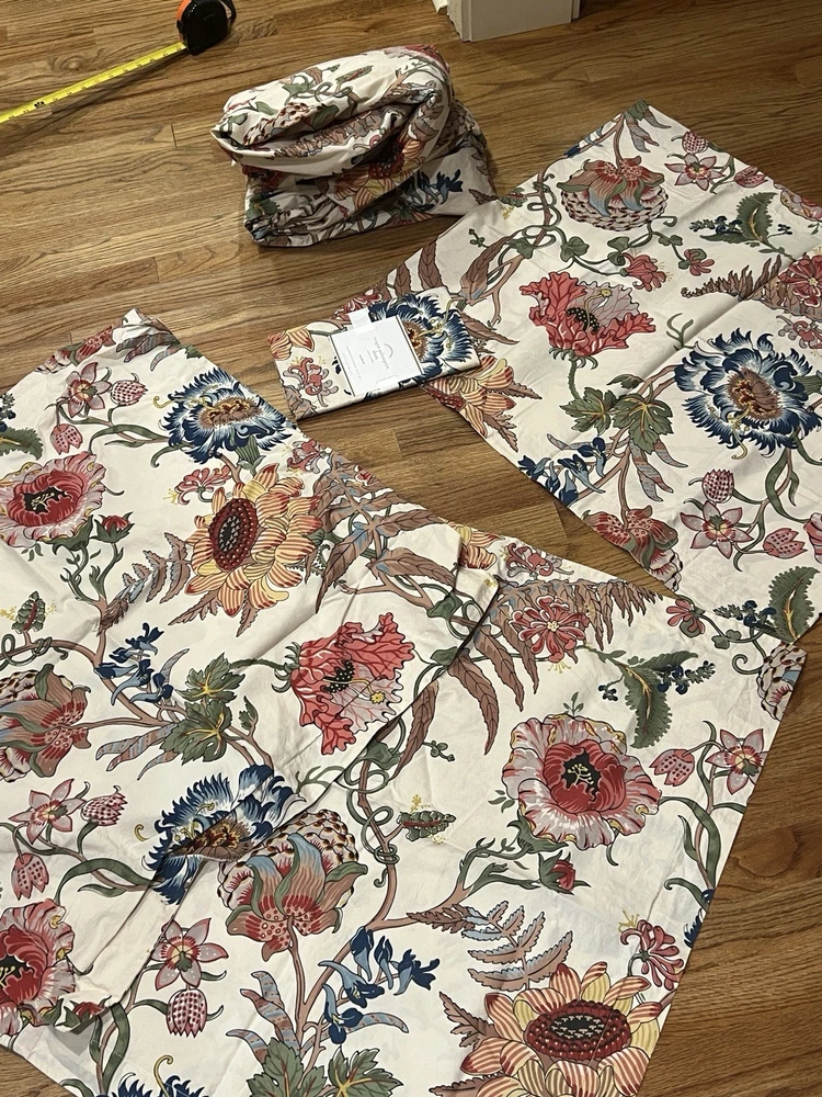 Estate find. I don’t believe they’ve ever been used. One standard sham in original package. Comes with queen duvet, 2 standard shams and 2 euro shams. No returns....