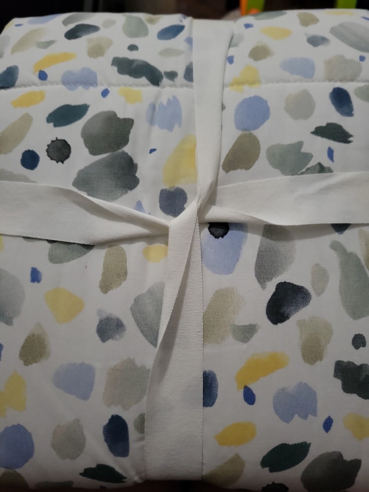 Add a touch of French Country charm to your bedroom with this Pottery Barn Rebecca Atwood Paint Daubs Euro Sham. The sham features a colorful dots pattern and a square shape that will complement any bedding set. Made of high-quality percale material, this sham is machine washable and tumble dry for easy care. The Pottery Barn Rebecca Atwood Paint Daubs Euro Sham is a perfect addition to any teenager's bedroom. It measures 26 inches in length and 26 inches in width, providing a comfortable and cozy feel. The sham also features a zip closure for easy insertion and removal of pillows. Bring style and comfort to your bedroom with this versatile and machine washable sham.