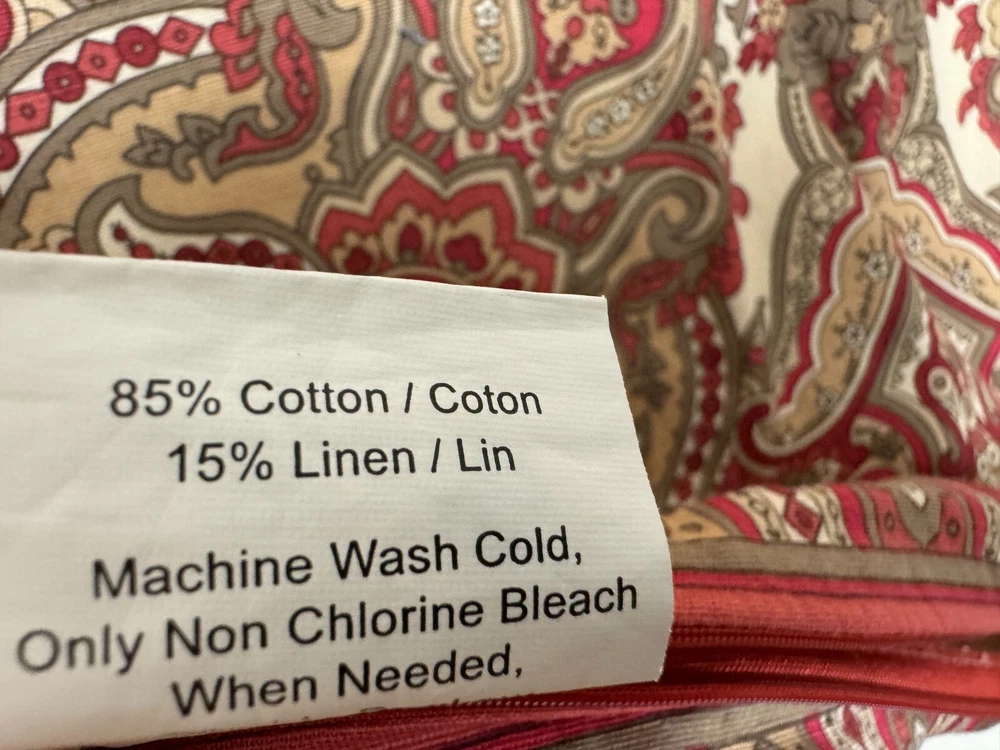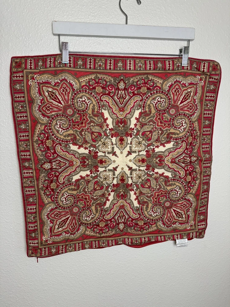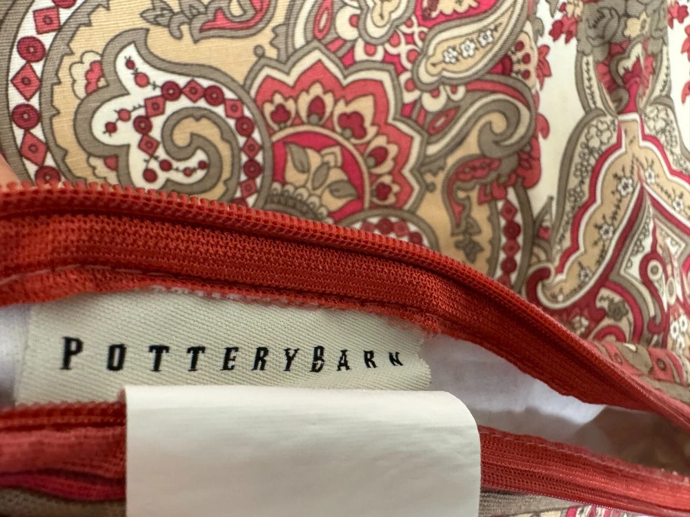 Pottery Barn Red Paisley Pillow Cover / Case Cotton & Linen 23 in x 23 in Lining Excellent pre-owned condition
