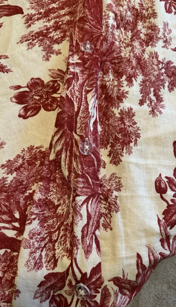 BEAUTIFUL! Such a rich red color. This is in EXCELLENT preowned condition. Clear button closure if you want to add a comforter. Shown on a queen size bed. The shams are standard pillow side with nice ...