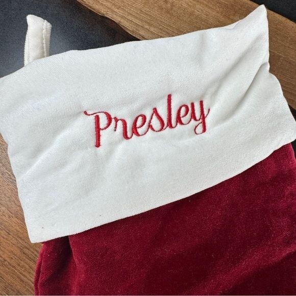 This stunning red velvet stocking is the perfect holiday touch—luxe, festive, and beautifully monogrammed for Presley. The plush sustainable cotton feels high-end, and the cream cuff adds classic charm. Generously sized, it’s ideal for stuffing with gifts. Fast shipping and great seller service make it even better! A must-have for Christmas decor.