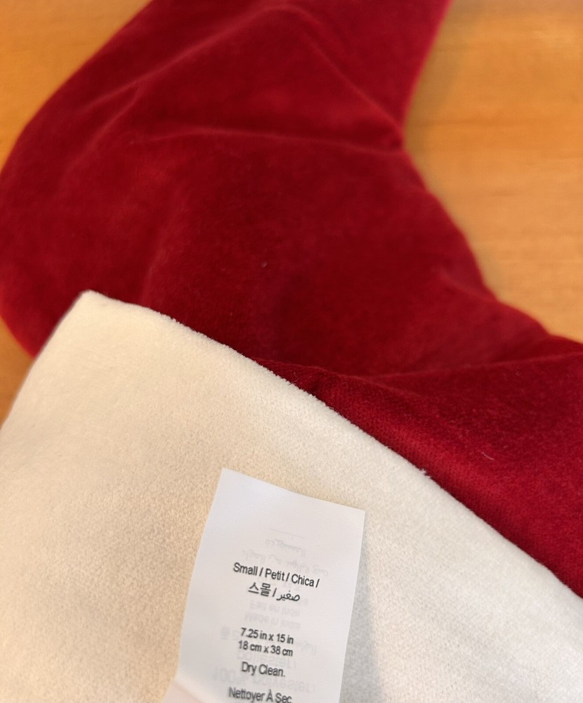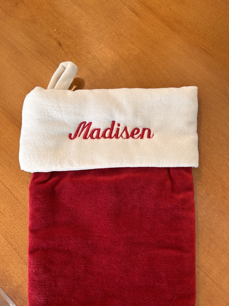 Pottery Barn Red Velvet Small Christmas Stocking Mono “Madisen” NWOT...