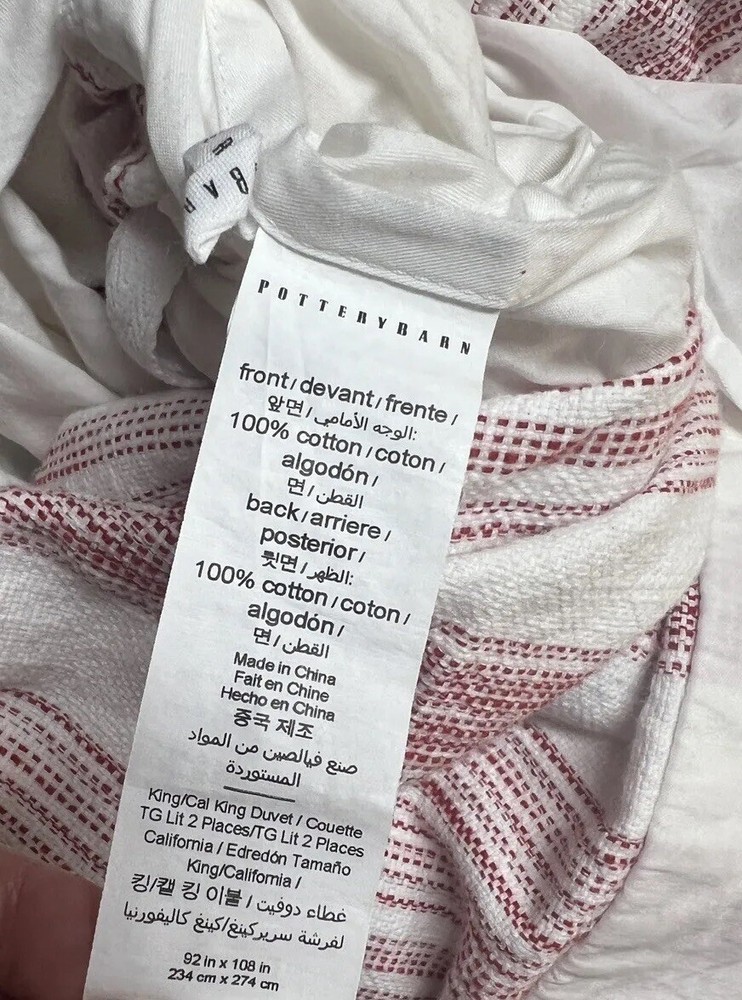 Pottery Barn Hawthorn Duvet Cover red/white king/cal king button closure...