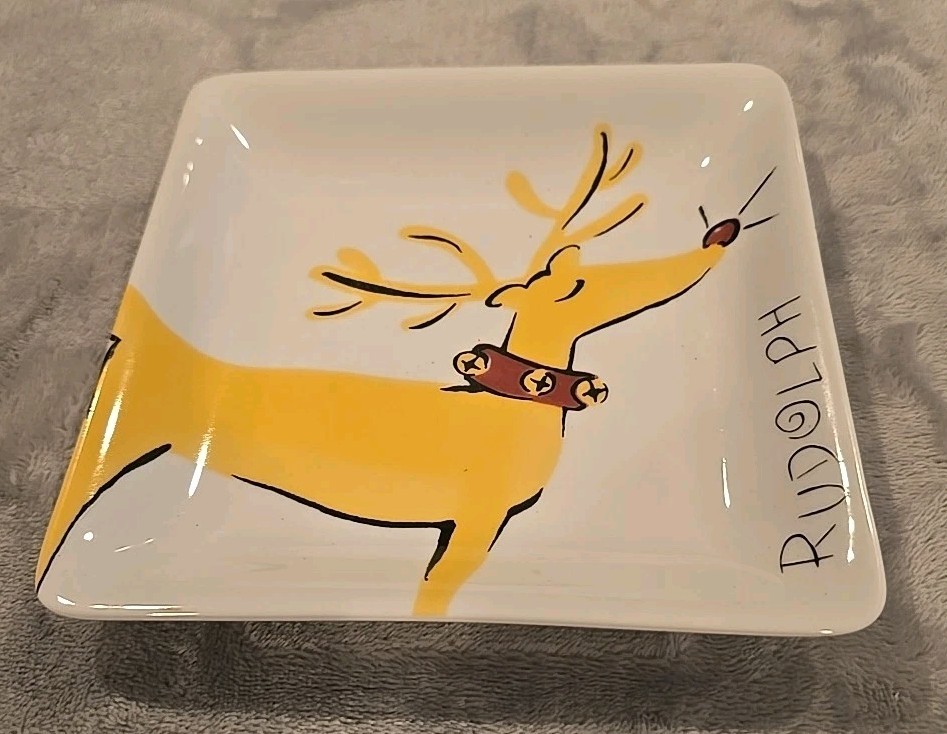 Pottery Barn Reindeer Rudolph Square Appetizer Snack Plate Gently Used See Pictures for condition and colors