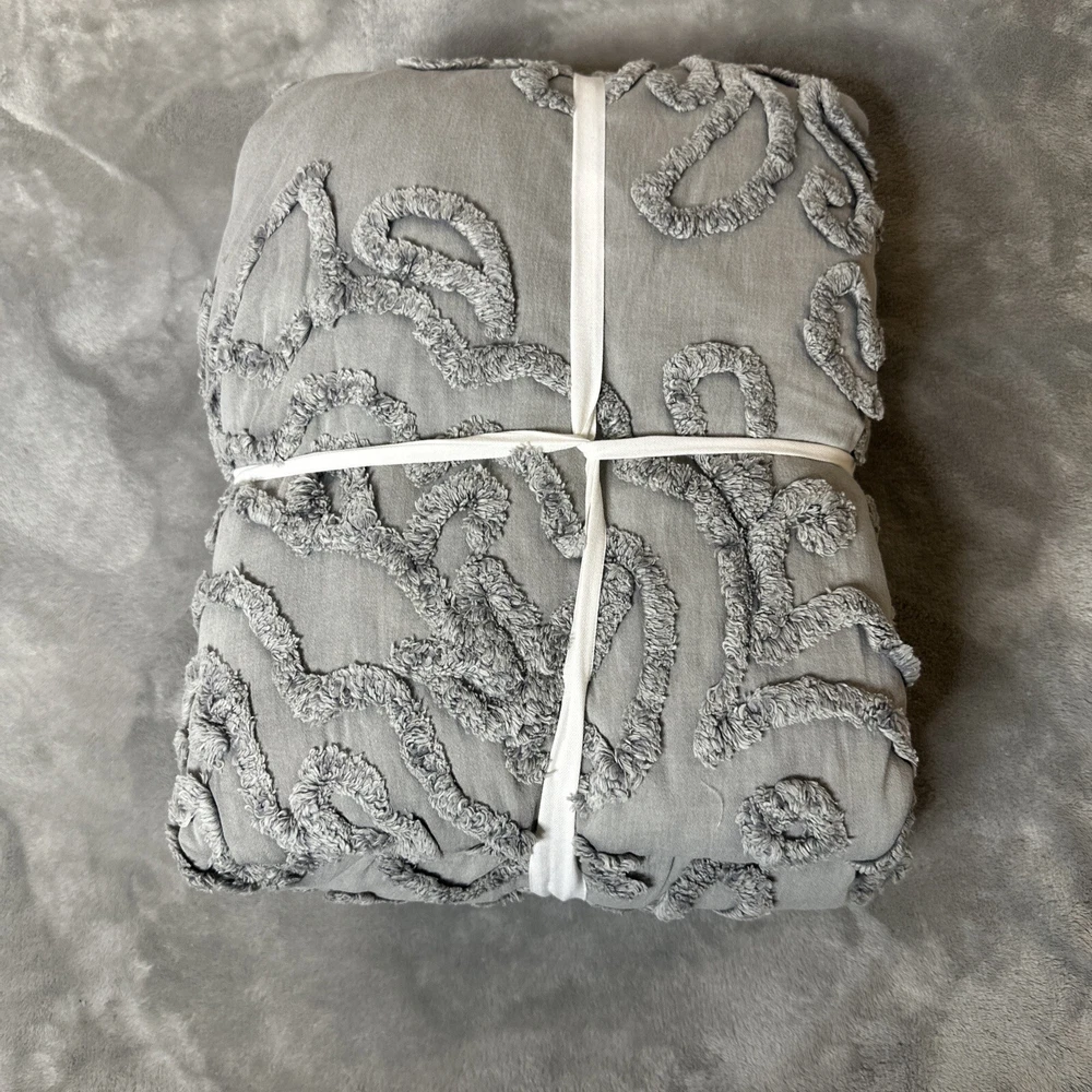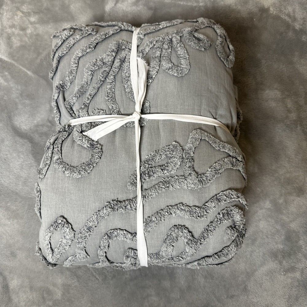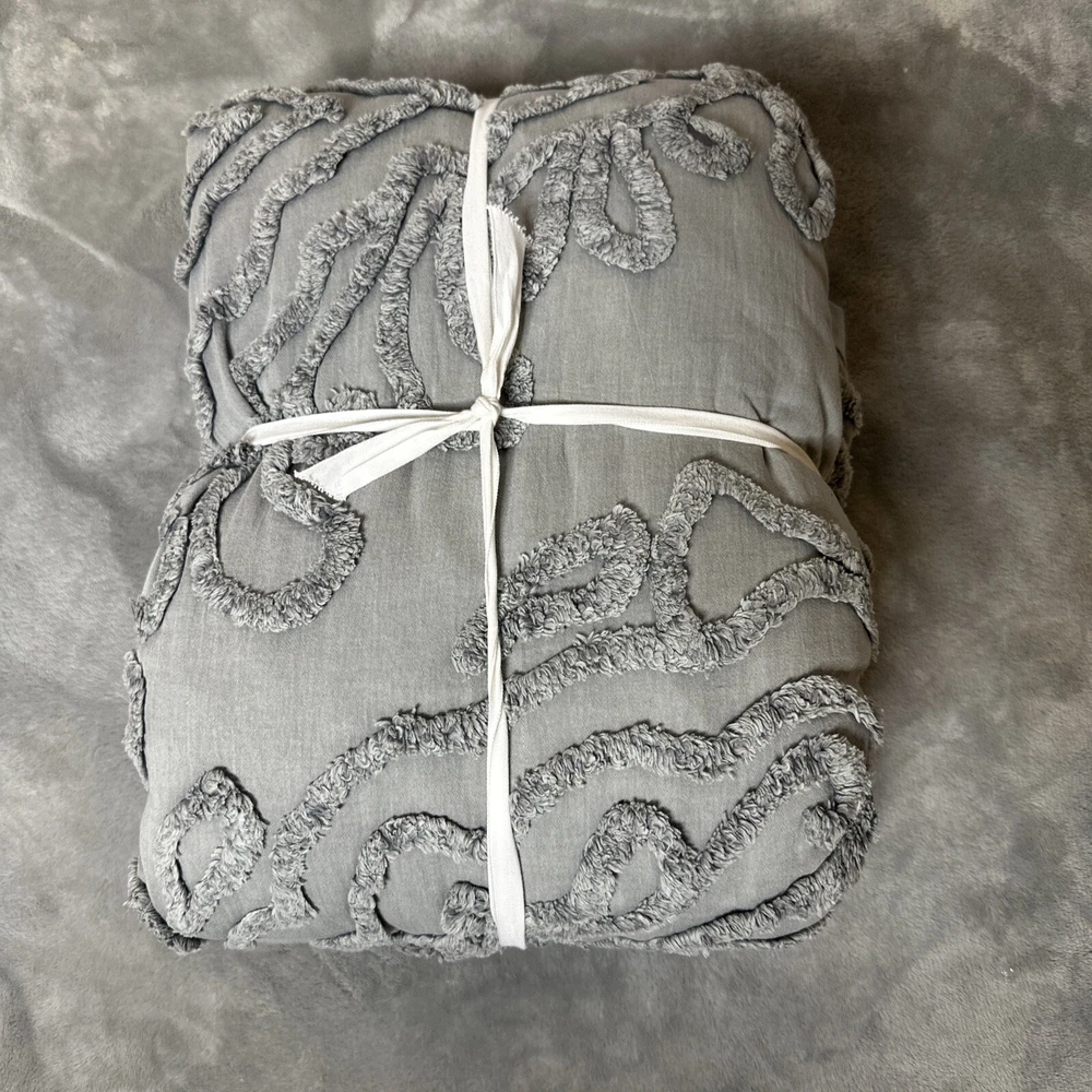 Transform your bedroom into a haven of style and comfort with this beautiful Pottery Barn Renee Candlewick Sateen Full/Queen Duvet. The dove gray duvet cover comes in the brand's signature high-quality 100% cotton material, ensuring that you get the best of both worlds - a luxurious feel and durability. The buttons closure type adds a touch of class to the duvet, while the duvet cover set includes all the essential pieces that you need for a comfortable sleep. This duvet cover is perfect for anyone who wants to add a touch of elegance to their bedroom. The neutral gray color makes it versatile enough to fit into any bedroom decor, while the model name, Renee, adds a personal touch. Bid goodbye to boring bedding and bring home this exquisite duvet cover set today.