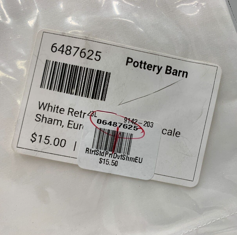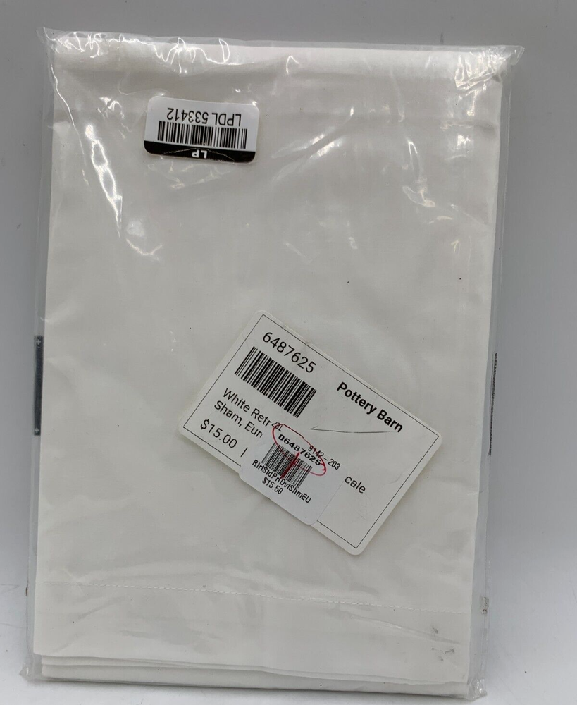 Pottery Barn Resort Essential Percale Sham Item is brand new Auction includes: 1 sham PRODUCT DETAILS CONSTRUCTION: Made from 100% Percale Cotton. STANDARD 100 by OEKO-TEX® Certified: WSI Certificate #: 14.HUS.42449: tested for 400+ harmful substances to keep you and your family safe from chemicals common to textile manufacturing. Contract grade. Sheeting was tested for 50 cycles and the items pass for tear and tensile strength, dimensional stability, whiteness appearance after wash and colorfastness. Sham features an overlap closure. Shams and inserts are sold separately. Shams sold individually. Imported. Standard Sham: 20" h x 26" w Euro Sham : 26" sq King Sham: 20" h x 36" w CARE: Machine wash warm; gentle cycle. Only use non-chlorine bleach, if needed. Tumble dry on low heat; remove promptly. Medium iron, as needed.