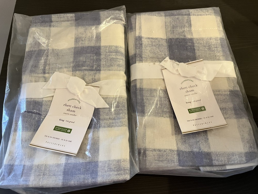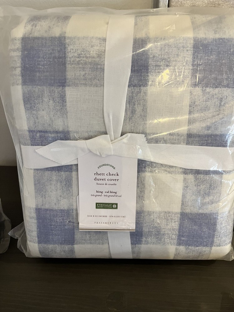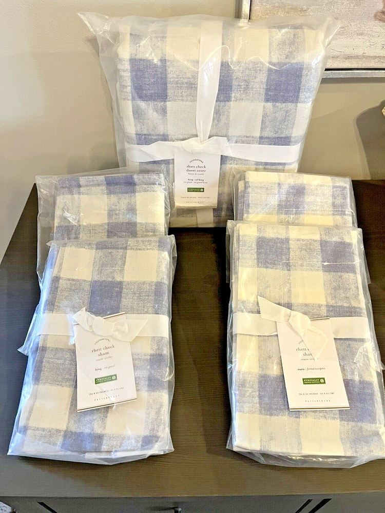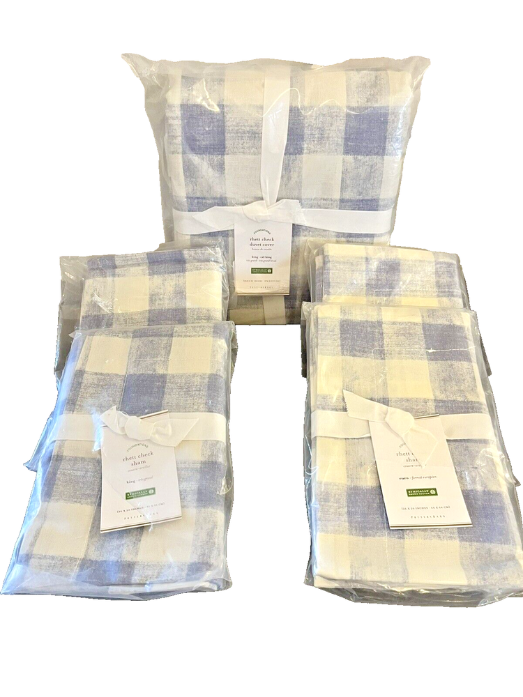 Brand New You get all 5 Pieces together for 1 Price Wonderful Set Blue Cream Check Pattern CONSTRUCTION: Made from 100% Organic cotton; organic cotton is grown without the use of toxic and persistent pesticides and synthetic fertilizers. Reverses to same pattern. Duvet features a hidden button closure with interior ties to keep duvet in place 200-thread count. Machine wash. Imported. DIMENSIONS: 1 Duvet Cover King/Cal King: 92" l x 108" w 2 King Size Pillow Shams 36" x 20" 2 Euro Shams 26" x 26" CARE AND MAINTENANCE: Machine wash in cold water; gentle cycle. Only non-chlorine bleach when needed. Tumble dry on low heat; remove promptly. Warm iron as needed.