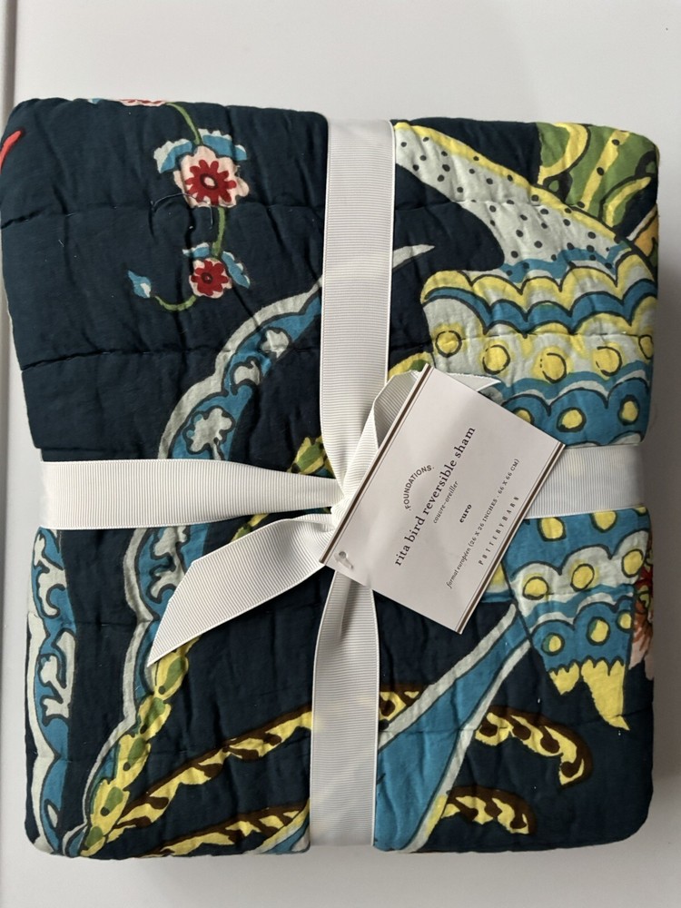 Pottery Barn Rita Bird Reversible Euro 26" x 26" Pillow Sham New with tags....