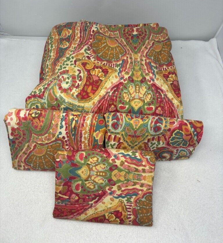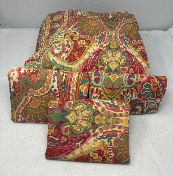 Pottery Barn Rosalie Red King Duvet Cover Set with Euro Shams Floral Paisley 4pc Rare