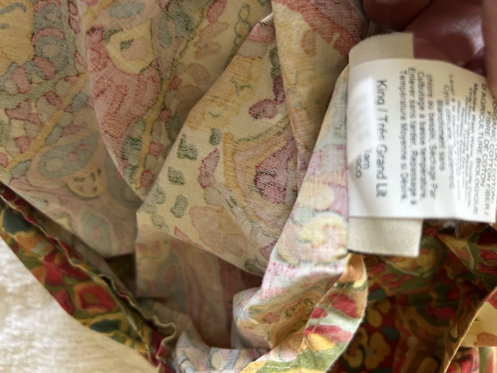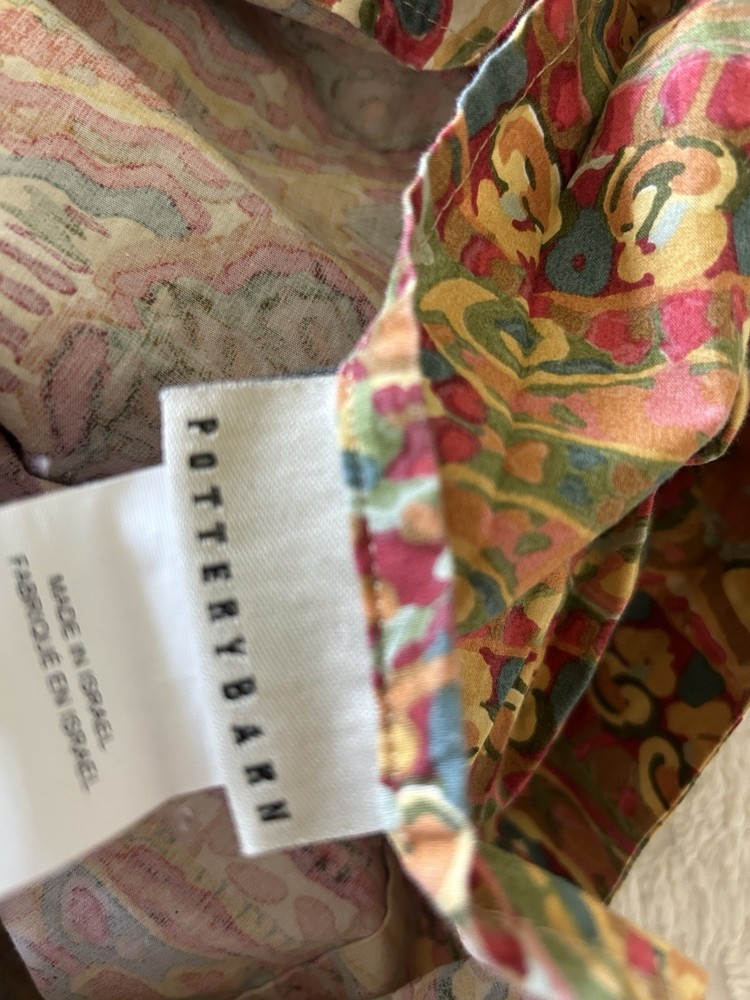 Elevate your bedroom with the Pottery Barn Rosalie Paisley King Duvet Cover. Boasting a vibrant and intricate paisley floral pattern, this multicolored duvet cover is made from 100% cotton, ensuring a soft and comfortable feel. The rectangular shape and inside ties provide a sleek and tailored look, while the button closure adds a touch of boho style. This duvet cover is perfect for teens and adults, and can be easily cared for with a machine wash and tumble dry. The Rosalie Paisley duvet cover is a great addition to any bedroom, adding a touch of art and style to your bedding collection. Very nice clean condition