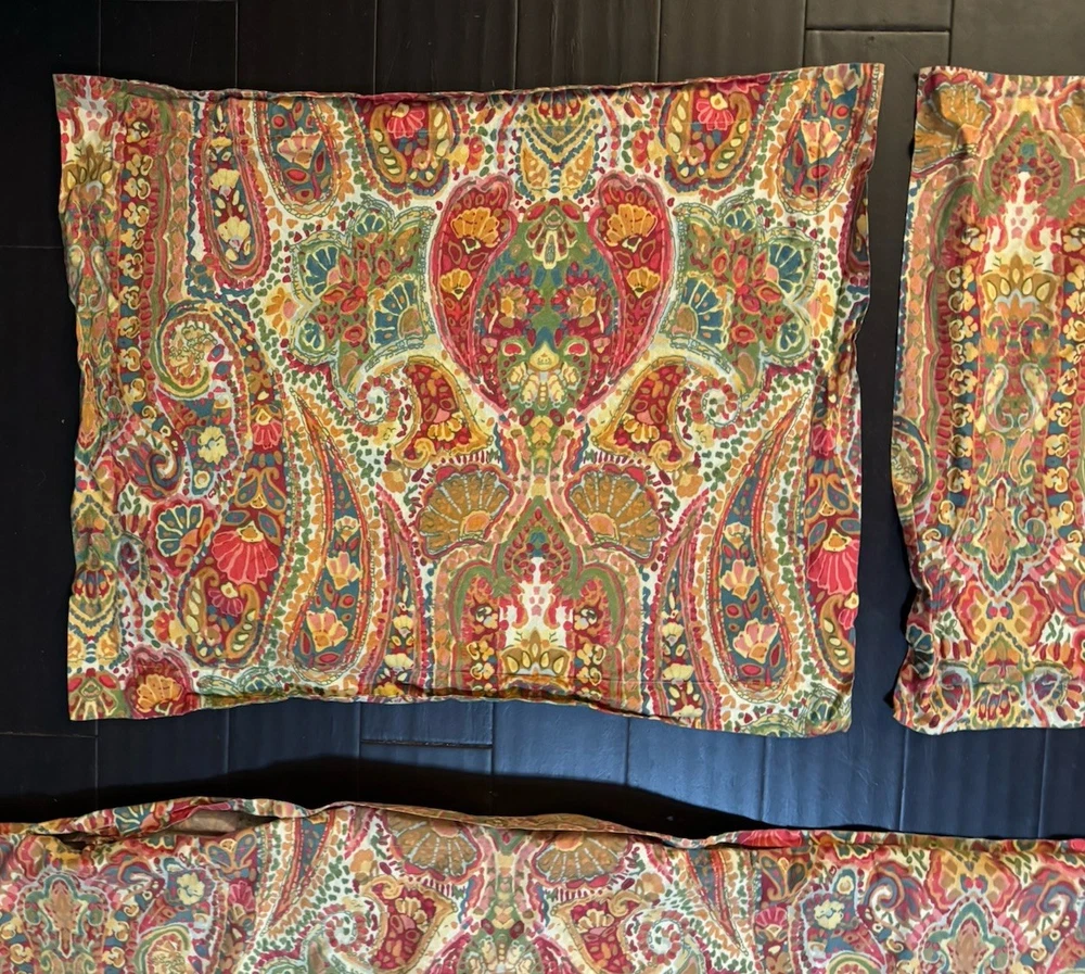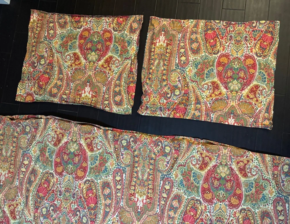 Great condition! The most accurate colors are the close up pictures. 2 standard shams and 1 full/queen duvet measuring 88 inches by 86 inches. Same day shipping when possible and packaged with care!...