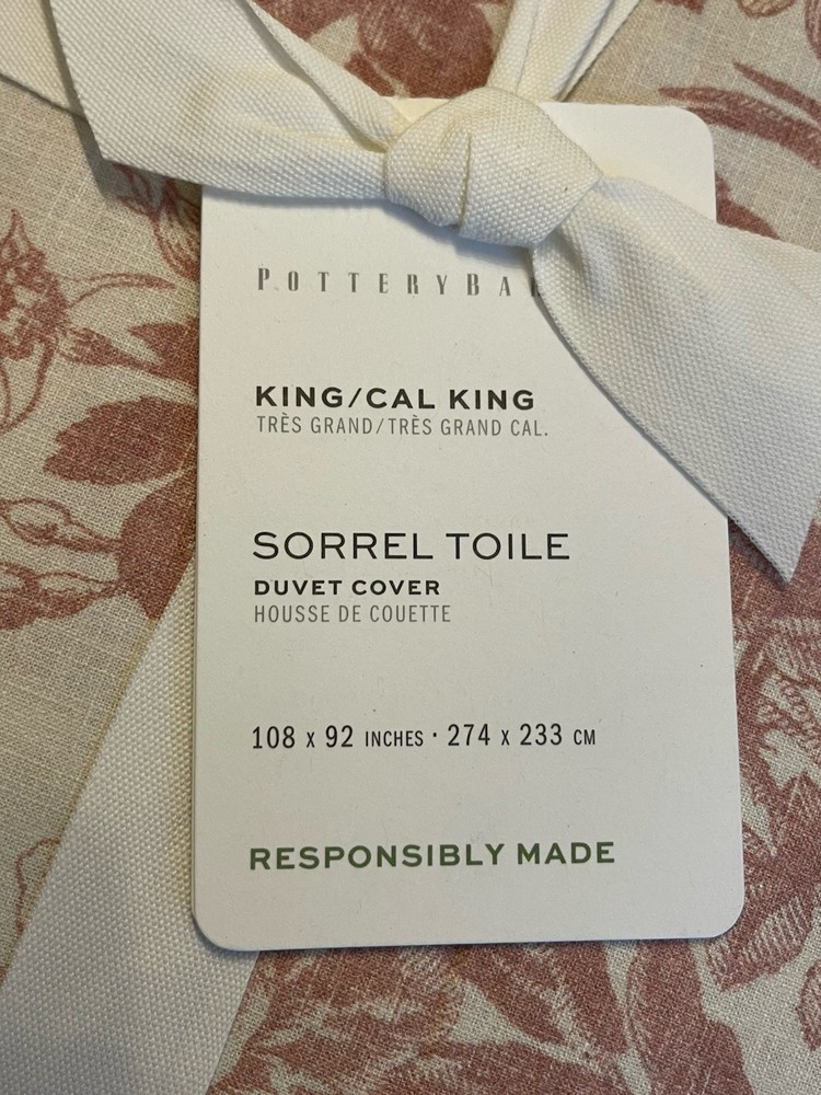 Pottery Barn Rosewood Sorrel Toile Floral Duvet Cover - KING / CAL - NEW Condition: New with tags Size: King / California King Color: Rosewood (Pinkish) No longer offered through PB and tough to find! 12.99 shipping to the U.S. Thank you for your interest!