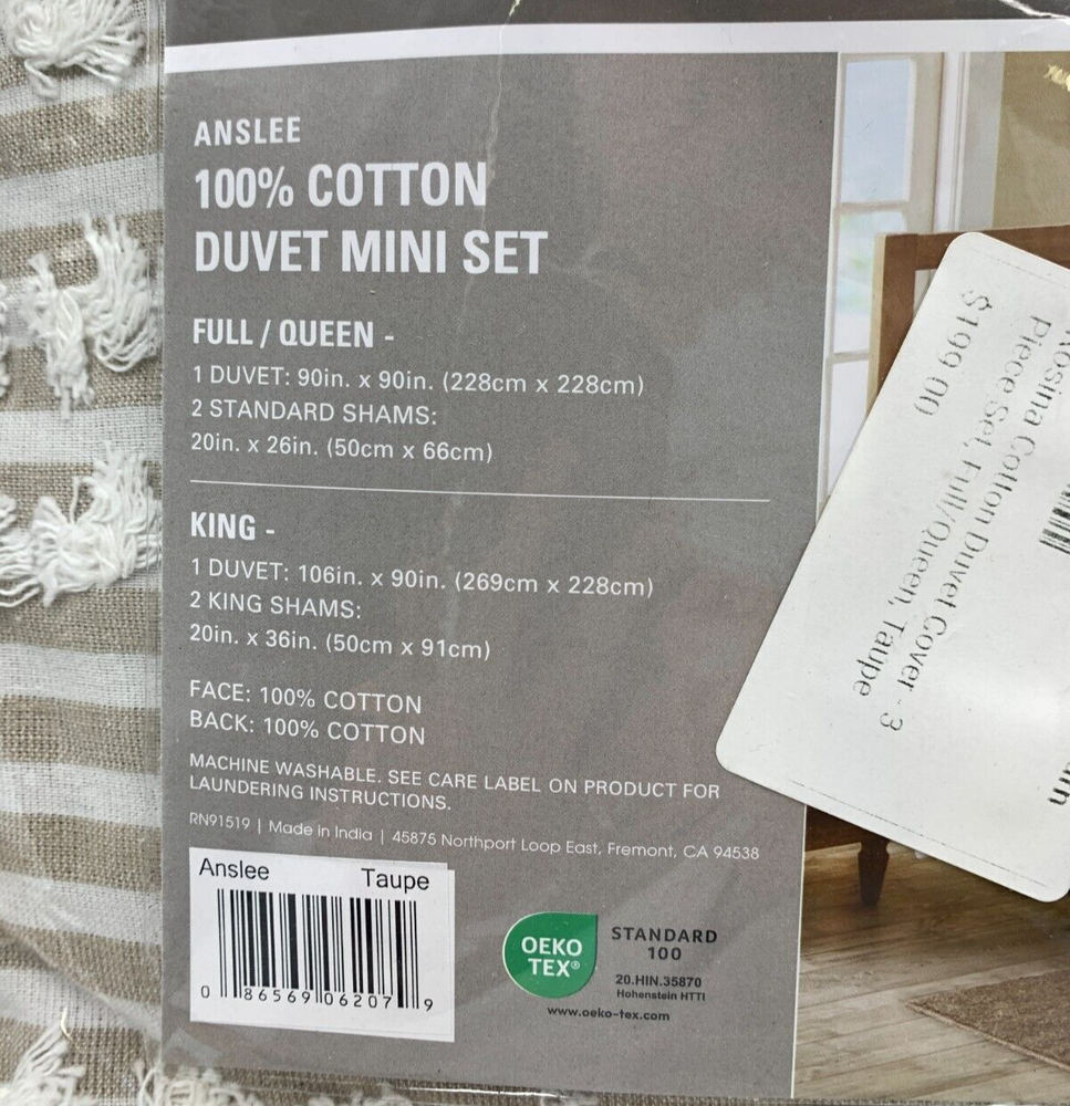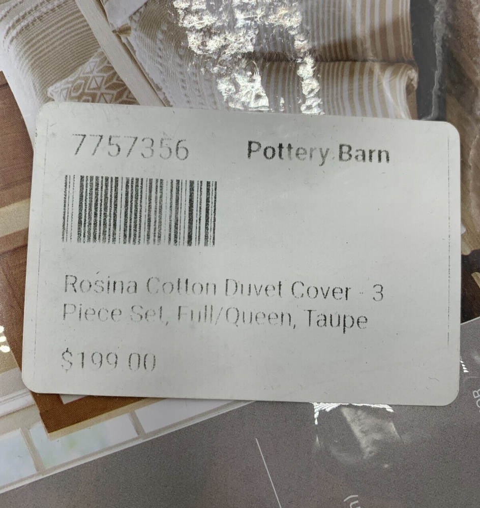 Pottery Barn Rosina Cotton Duvet Cover Set Item is brand new Auction includes: 1 duvet cover, and 2 standard shams PRODUCT DETAILS CONSTRUCTION: Expertly crafted of organic cotton. Duvet features a hidden button closure with inner ties that keep insert in place; sham features an overlap closure. Full/Queen includes 1 duvet cover, 2 standard shams. King/Cal King includes 1 duvet cover and 2 king shams. Yarn-dyed fiber has incredibly rich color that holds its vibrancy over time. STANDARD 100 by OEKO-TEX® Certified: WSI Certificate #: 14.HUS.42449: tested for 350+ harmful substances to keep you and your family safe from chemicals common to textile manufacturing. This item ships directly from our vendor. Imported. CARE AND MAINTENANCE: Machine wash cold on gentle cycle. Only non-chlorine bleach when needed. Tumble dry low; remove promptly. DIMENSIONS: Duvet FULL/QUEEN: 90" w x 90" l Shams STANDARD: 20" w x 26" l