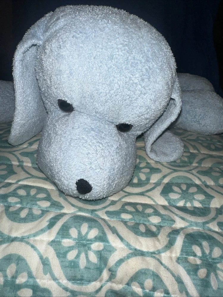 This adorable plush puppy from Russ is the perfect addition to your baby's collection. Its soft and cuddly blue plush material makes it a great companion for your little one to play with. Whether it's for napping or playing, this blue plush puppy is sure to bring a smile to your baby's face. Its brand name, Russ, ensures that you're getting a high-quality and long-lasting toy that your baby will love for years to come. Add this plush puppy to your baby's toy collection today! Very HTF plush in good condition. Some damage to tail shown in photos.