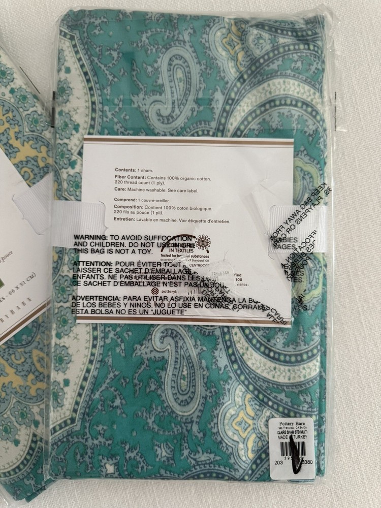 Brand New With Tags Set of 2 Pottery Barn ~Claire Scarf Print~ Standard Pillow Shams. A vintage scarf print inspired this beautiful Claire Sham. Bright color for the ultimate stylish finish to a bohemian bed. Machine wash. Please let me know if you have any questions or would like additional pics. Also, please ask all questions prior to bidding as I do not normally accept returns, unless I have made a mistake while listing the item. At this time, I am only able to ship to confirmed US addresses... Item comes from a clean, non-pet and non-smoking home. Thanks for taking the time to view this great item, and Happy Shopping!! 🎅