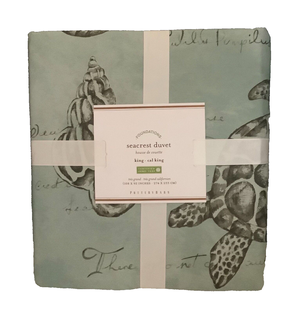 Pottery Barn Seacrest King/Cal.King Duvet Cover and 2 EURO Shams New with Tags Sealife depicts salmon, lobster, sea turtles and shells to give an ocean feel to your bedroom. Material: 100% cotton which includes 5% organic cotton. 200 thread-count. Duvet and shams reverse to same design. Duvet cover has hidden button closure to keep duvet in place. Shams have an envelope closure. Duvet: King/Cal.King 108" wide x 92" long 2 Euro Shams: 26" x 26" square Machine wash. Imported. Fast shipping from a smoke-free, pet-free home. Thank you for shopping with me. Feedback from buyers: * "This is, by far, the best shopping experience I’ve had ever. Period. This seller went above and beyond to make sure she did every single thing possible to get me the sheet set I’d ordered. And then she followed up with a generous thank you. I’ve never had so much fun buying something!" * "The seller could not have made it any easier to make a purchase. The communication concerning the status of shipping and any follow up questions was quickly answered. This is what real customer service feels like. I would purchase from this seller again!" * "So so sorry for the belated feedback. This was the best seller I have ever encountered on eBay or anywhere for that matter, so kind, thoughtful, personable, accommodating. Went out of her way to get me the items even faster than ASAP w/out upcharge. Everything was pristine, beyond perfect, impeccably wrapped, I am so grateful and was thrilled to have the items needed for my first post COVID dinner party. She is a model for all sellers, her customer service is beyond compare, incredible actually. "