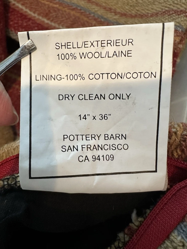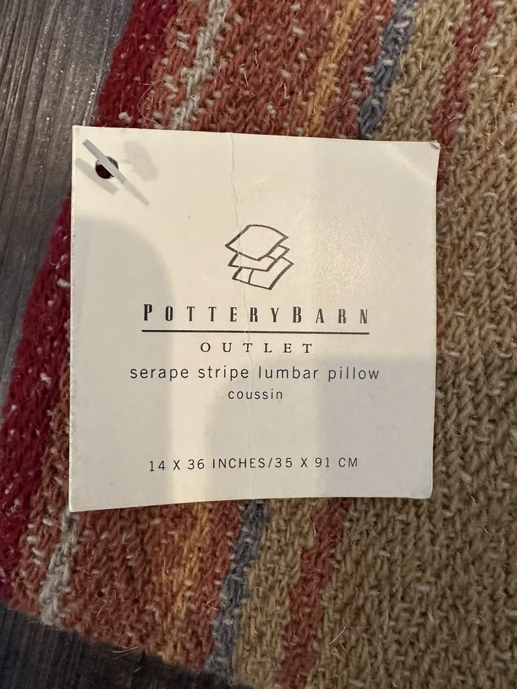 Pottery Barn ~ SERAPE STRIPE Lumbar pillow cover. 14" x 36" NEW (old stock) Hard to find older pattern. I have multiple available, they are all new. Some have the original tags, others they tags have fallen off. Beautiful southwest colors of deep red, tan, brown, terra cotta and some green. 100% wool. Lining: 100% cotton. Hidden Zipper. I also have the coordinating square pillow on another listing. Any questions, please ask prior to purchase. Please check out my other treasures! New and hard to find items listed weekly. I usually offer 4 shipping options, so please compare and select the best option for you. I am always happy to combine items to save you money on shipping costs. Please request PRIOR to making payment. Thank you for browsing my store, I greatly appreciate it!