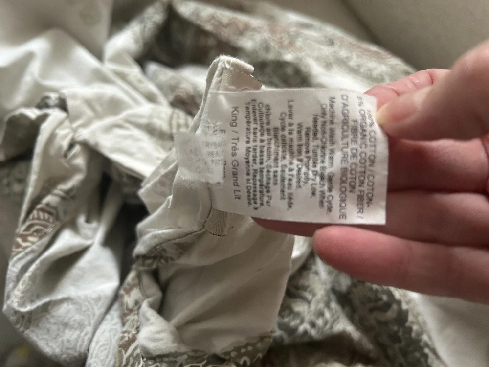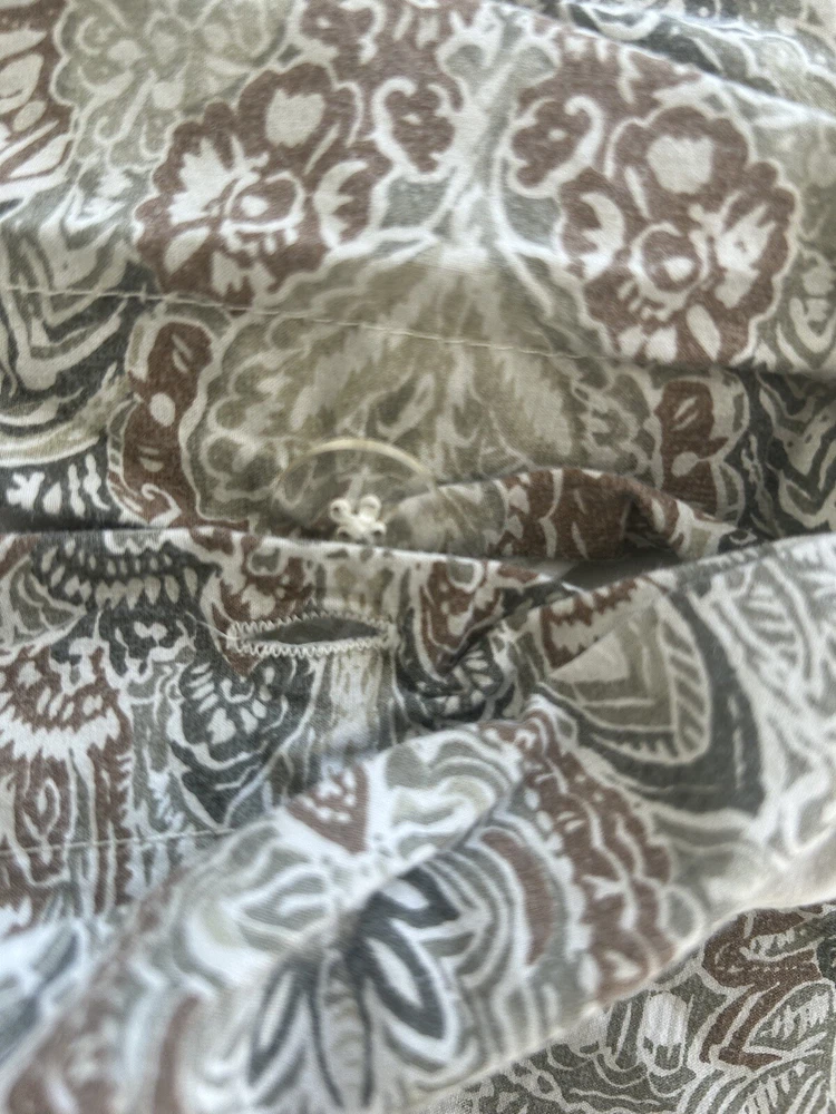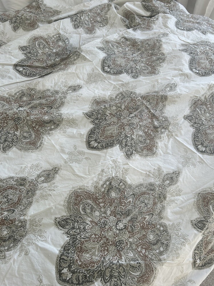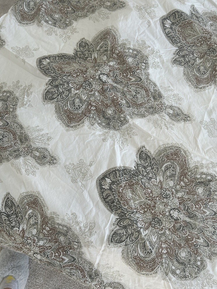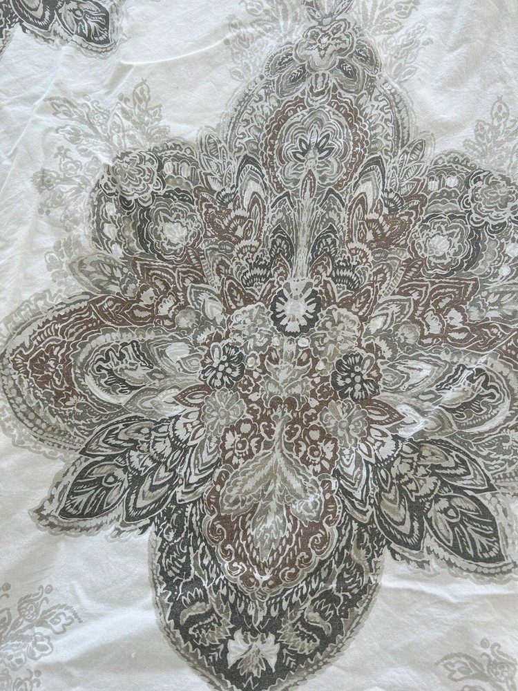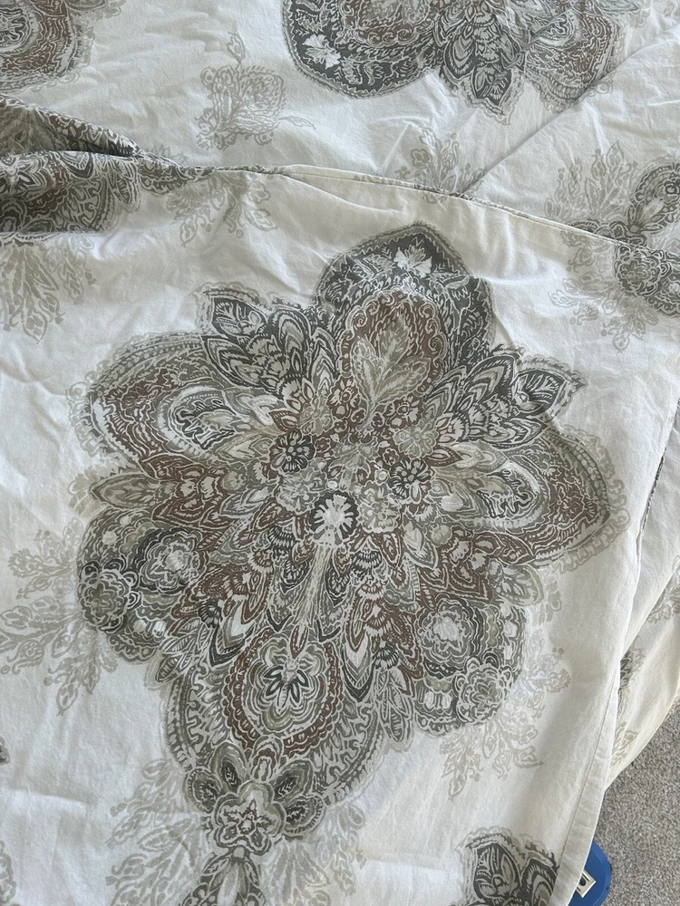 Add a touch of elegance to your bedroom with the Pottery Barn SERRAN0 Medallion Paisley King Duvet Cover. Made of 95% cotton and 5% organic material, this duvet cover is soft and comfortable. The paisley pattern in multi-neutral colors adds a classic touch to your bedding collection. This duvet cover is easy to care for with machine wash and tumble dry instructions. The button closure keeps the cover securely in place. Perfect for any bedroom, this duvet cover is a must-have for those who appreciate quality and style. Please let me know if you have any questions. Thanks for looking.