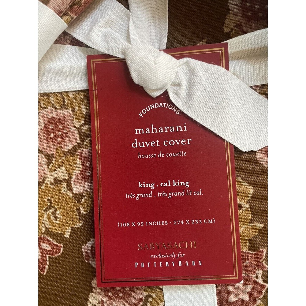 <![CDATA[<div>NWT- king duvet with king shams! Add a touch of elegance to your bedroom with this beautiful three-piece Pottery Barn duvet cover set featuring the stunning Sayasachi Maharani Print. The set includes a king duvet cover and two king shams, all made from a high-quality cotton/linen blend with a thread count of 201-400. The floral pattern in multicolor, green, brown, and pink adds a perfect touch of style to your room. The set is designed with an Indian style and features a button closure type. It is perfect for anyone looking to add a touch of sophistication to their bedroom decor. The set is made in India and is sure to impress anyone who enters the room.