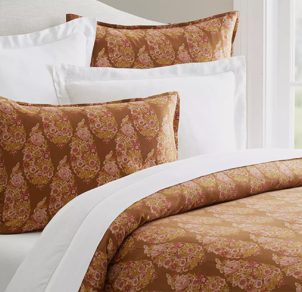 Pottery Barn Sabyasachi Maharani Print King /King Cal Duvet New 2 available listing is for 1 - check out my other listing for matching standard Sham Made from 85% brushed cotton and 15% linen. Reverses to front pattern. Duvet cover features interior ties; duvet have hidden button closures. 240-thread count.