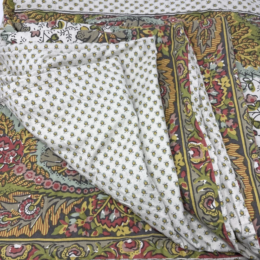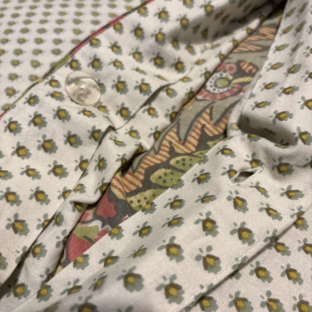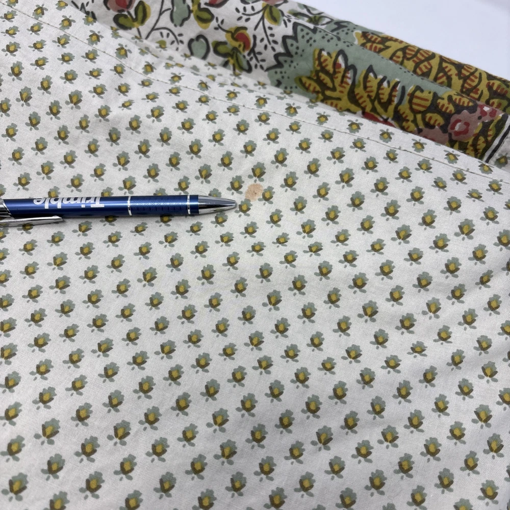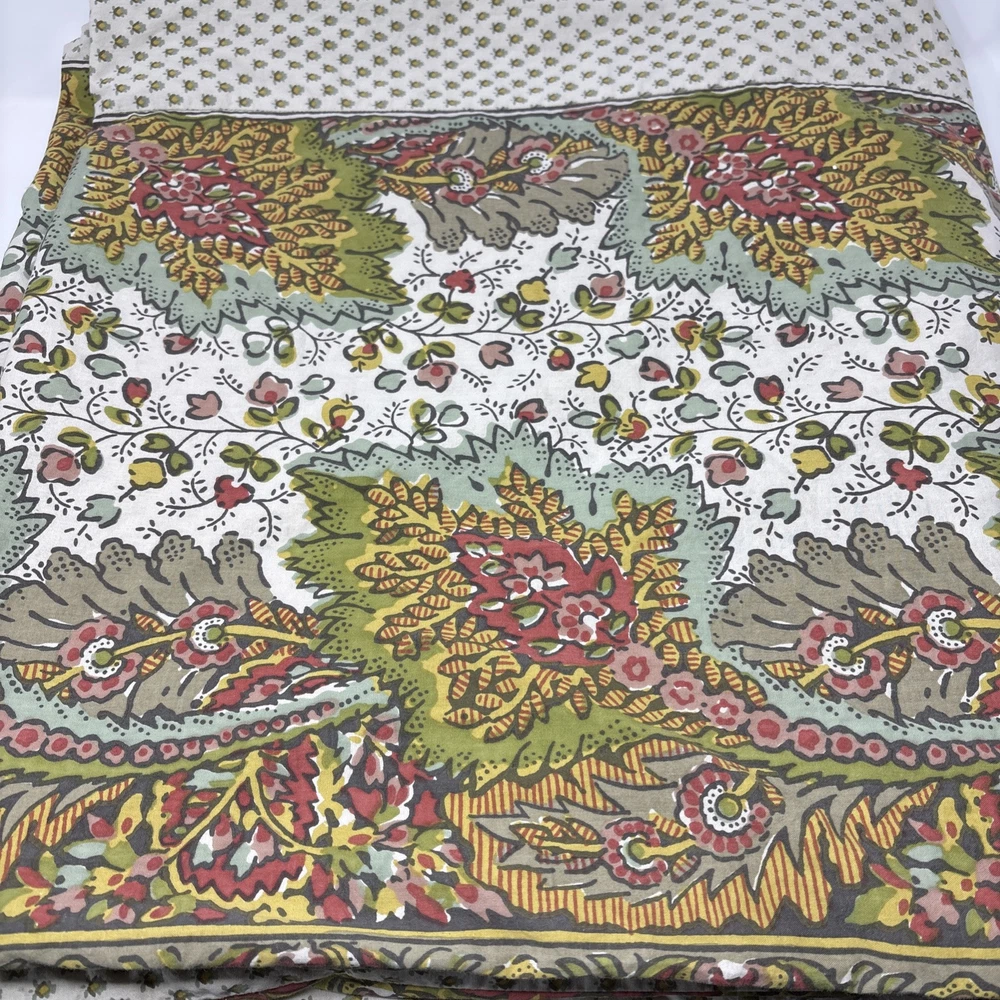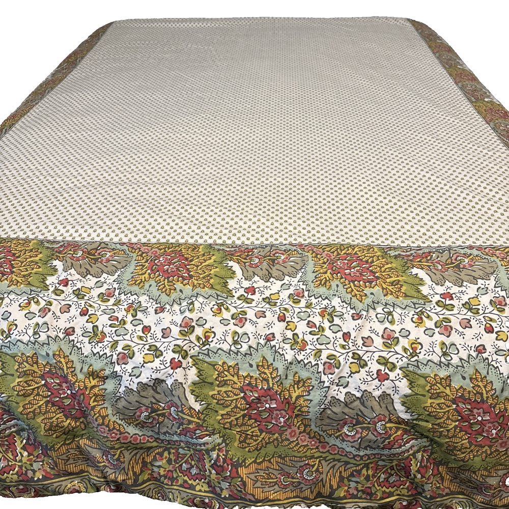 This full/queen size duvet from Pottery Barn is called Salinas and features pretty earth tone colors in a French Provencal style. All buttons are present and working properly. There is one small spot shown in pictures with pen. See all photos.