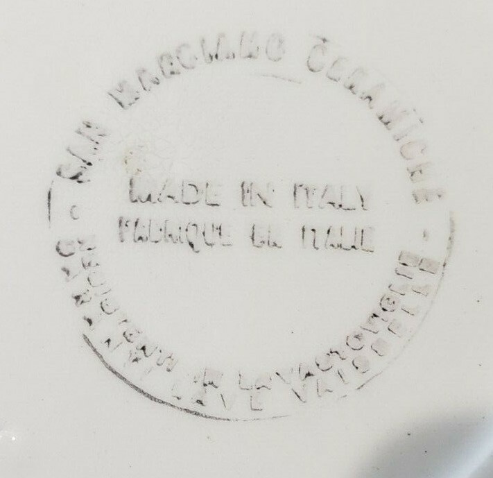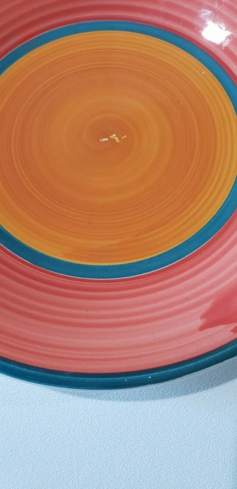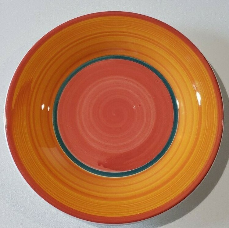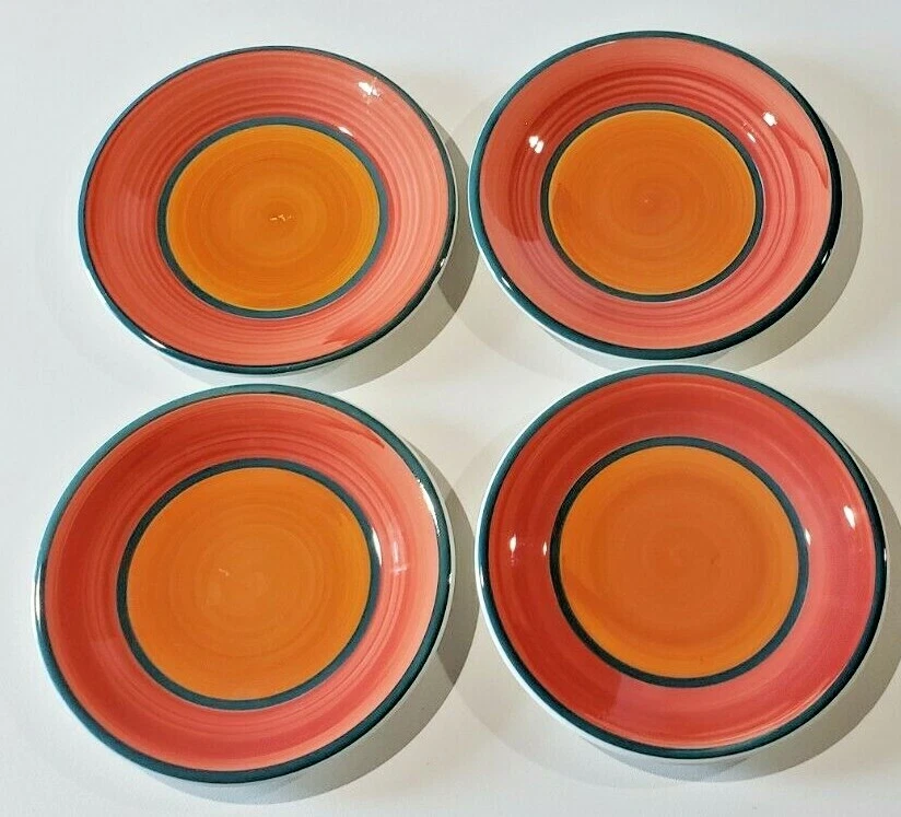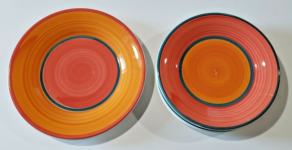FIVE (5) PIECES Pottery Barn San Mariano Ceramiche Orange Red Green Plates ONE (1) Dinner Plate Measuring 11-1/4" AND FOUR (4) Salad Plates Measuring 9-3/4" NEW - No chips or cracks. There are some flaws in the pottery. Please review the pictures.