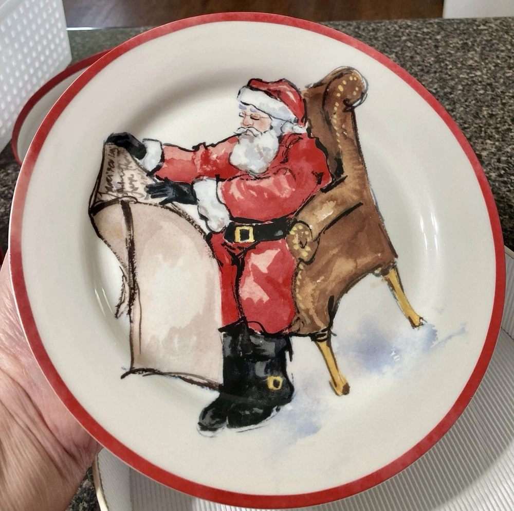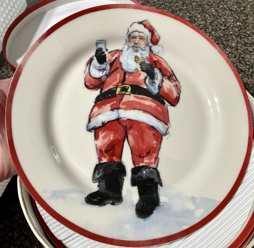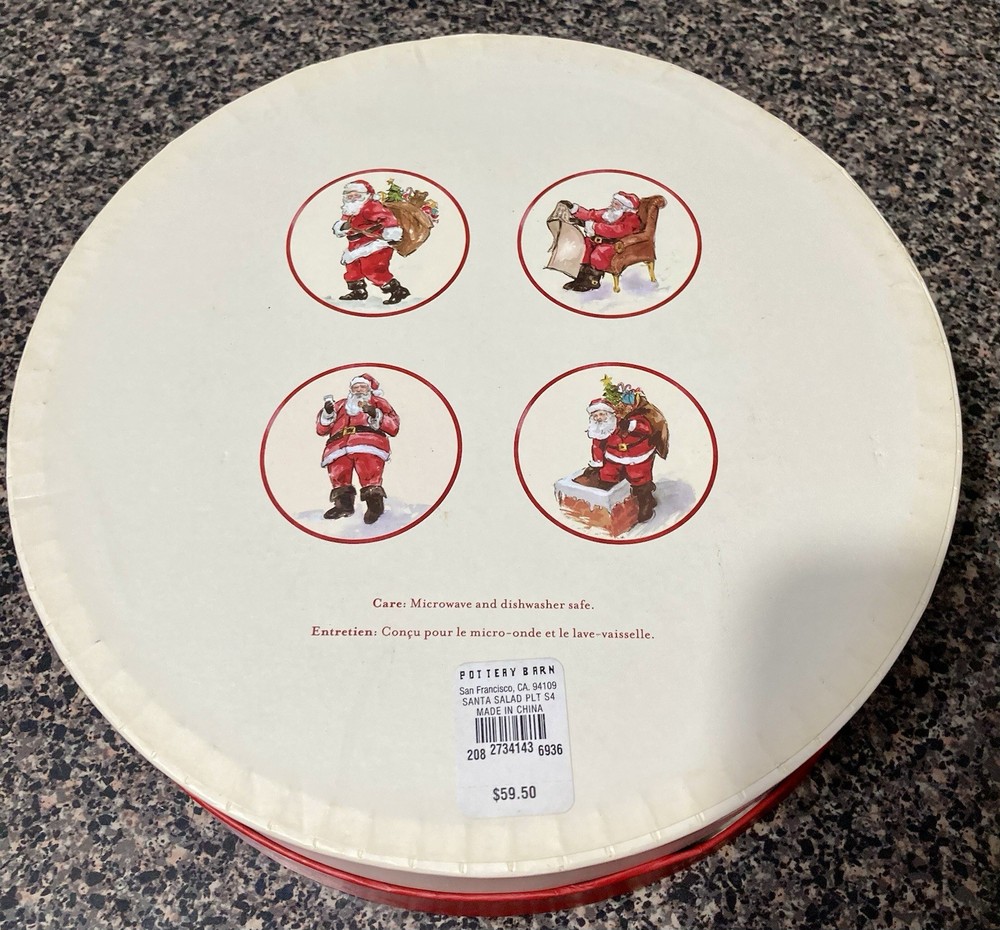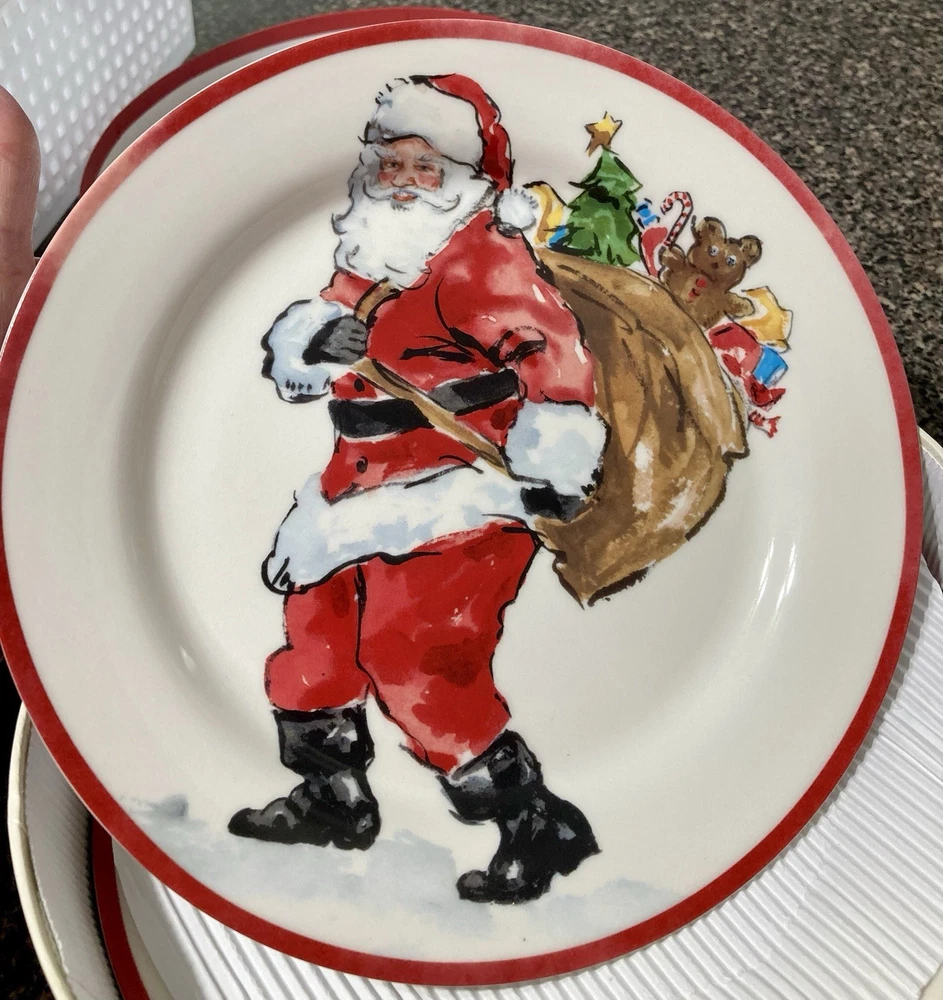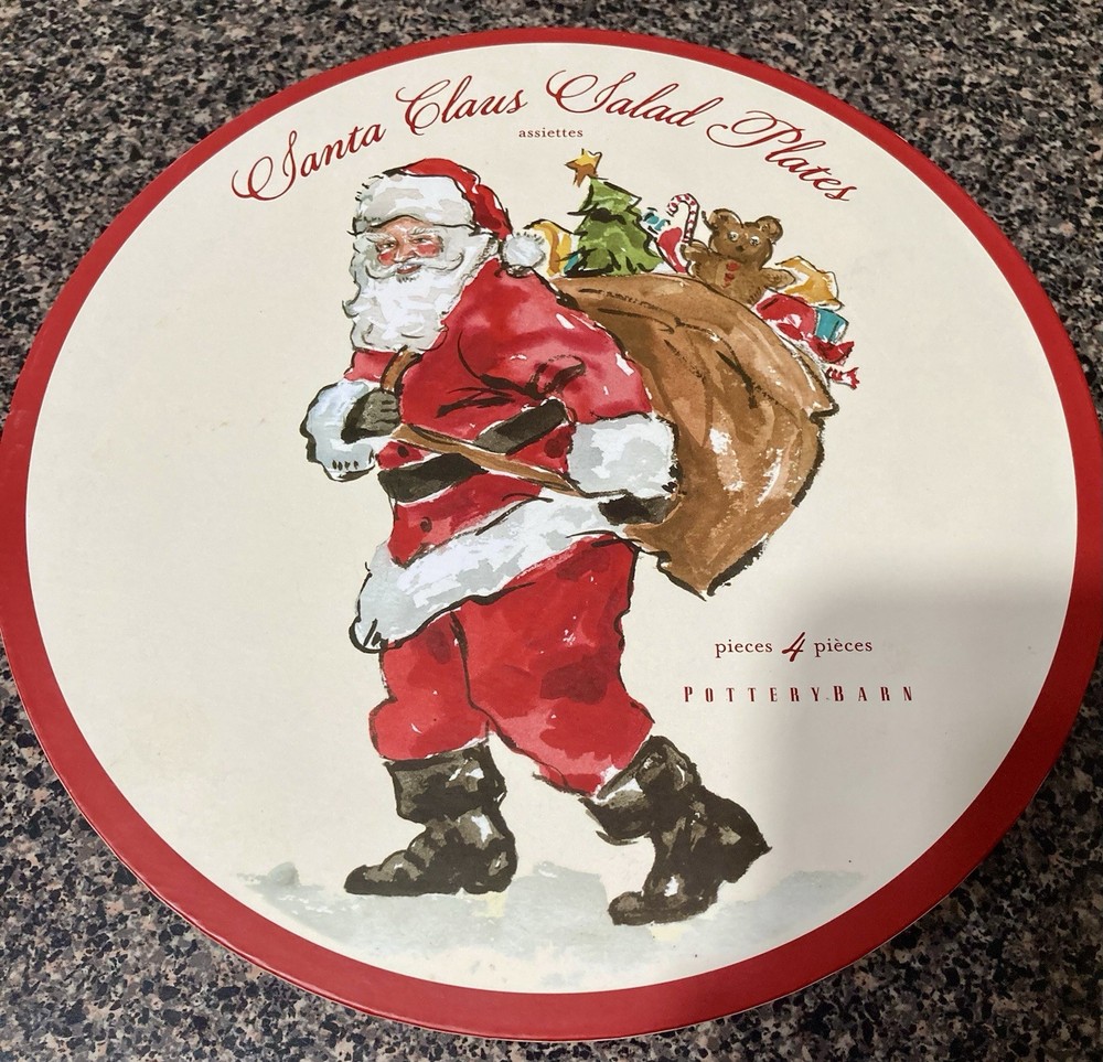 The Pottery Barn Santa Claus Salad Plates Set of Four is a festive addition to your holiday table décor. With a Christmas theme featuring Santa Claus, these salad plates are perfect for adding a touch of holiday cheer to your dining experience. Made by the reputable brand Pottery Barn, these plates are sure to be of high quality and stylish design, making them a great centerpiece for your holiday gatherings.