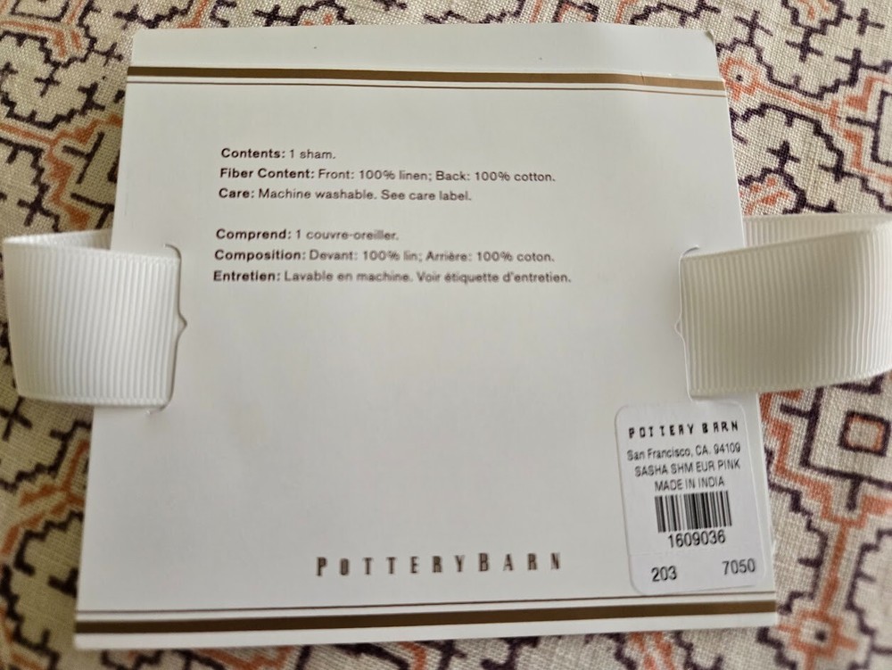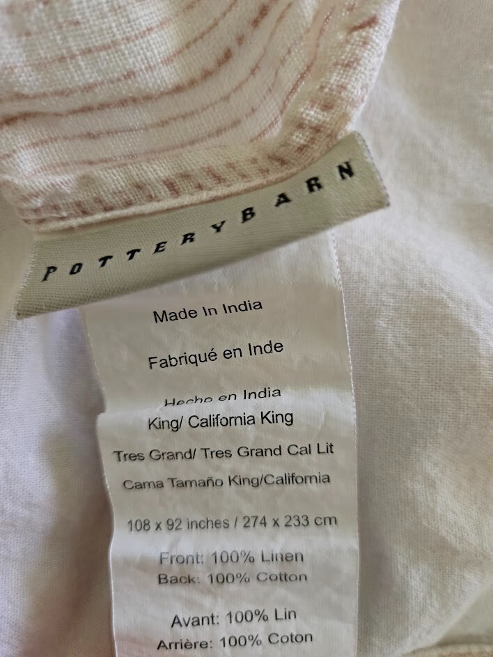 Up for bid from The Pottery Barn ~ SASHA Patterned Linen King/California King Duvet Cover (108" x 92") and 2 Linen Euro Shams (26" x 26"). Please note, third photo is a Pottery Barn photo . Taken from the Pottery Barn website: Design: Top off your bed with a sophisticated look inspired by an antique scarf. The delicate pattern is framed with a striped border and reverses to a solid off-white back. Secure Design: Duvet and sham feature a hidden button closure. Material: Made of a cotton and linen blend. Please review all photos. This is what you are buying. As stated in the description, duvet has been used and laundered (maybe twice). Shams used in staging but never laundered. Let me state right up front ~ I am no EXPERT! If you have any questions or need additional photos, please let me know as I would be happy to assist. If you are interested in an item, but aren't sure about the price, email me with a reasonable offer and I will consider it. I do not accept returns. I am an honest eBay Seller and treasure positive feedback. With regard to payment, you are expected to pay as soon as possible and no later than 2 days after you win or buy an item. PLEASE, if you need more time, contact me before YOU bid. Thanks for looking! . . .and, speaking about looking ~ VISIT my store ~ reenebeth ~ as I will be adding items almost every week ~ my collection is VERY diverse!! reenebeth