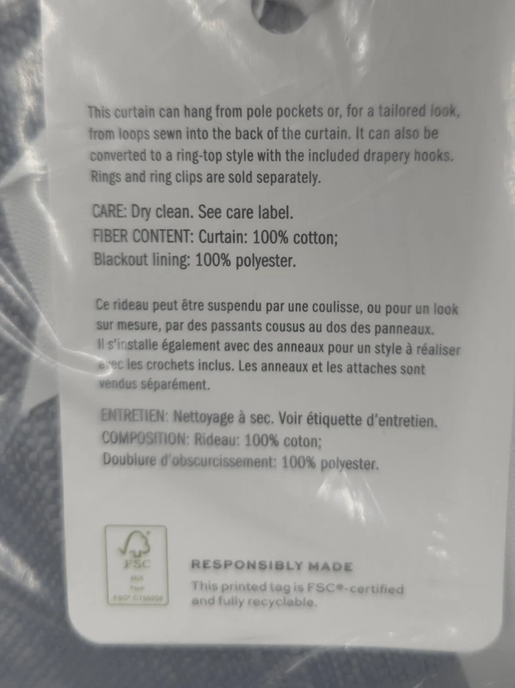 Pottery Barn Seaton Textured Curtain 100x108 Blackout Lining 3 in 1 Pole Top NEW Thank you for shopping my store! I want you to be happy with your purchase so I offer 30 day free returns. All items are washed per eBay selling standards unless the item is new with tags. All items are shipped from a pet friendly, smoke free home. Combined shipping is available - I will be happy to refund accurate shipping with multiple quantity orders. If you have any questions, please do not hesitate to ask. I answer questions or concerns promptly.