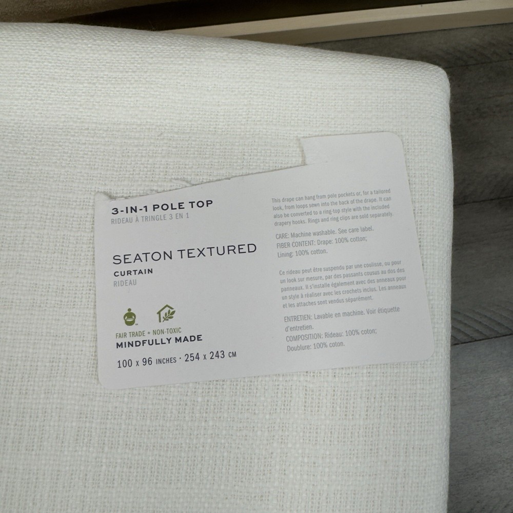 Pottery Pottery Barn Seaton Textured Lined Curtain Drape 100”x96” White W/Hooks NWOT New without tags item / open box - item ships without manufacturer packaging Please note, item ships with drapery hooks Dimensions: 100”x96” Transparency: cotton lined