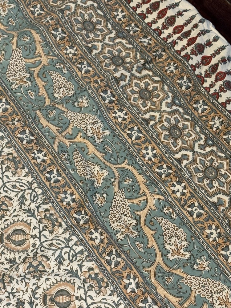 Like new set. On a guest bed. 2 standard shams and 1 king sham.