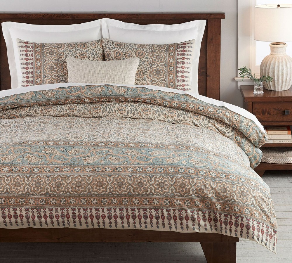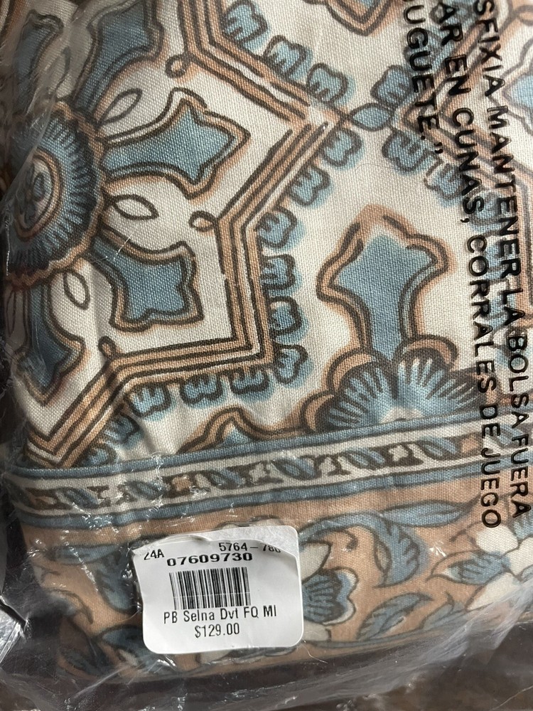 NWT - no longer sold This is a listing for a Pottery Barn Selena Kalamkari Queen Duvet Cover Set, which features a contemporary medallion pattern in a rich multicolor for a stylish addition to any bedroom. The set includes one duvet cover made from 100% cotton in a size of 92" long and 88" wide, with a button closure for easy use. This item has never been used, and is brand new with tags. It is designed to be machine washable for easy maintenance.