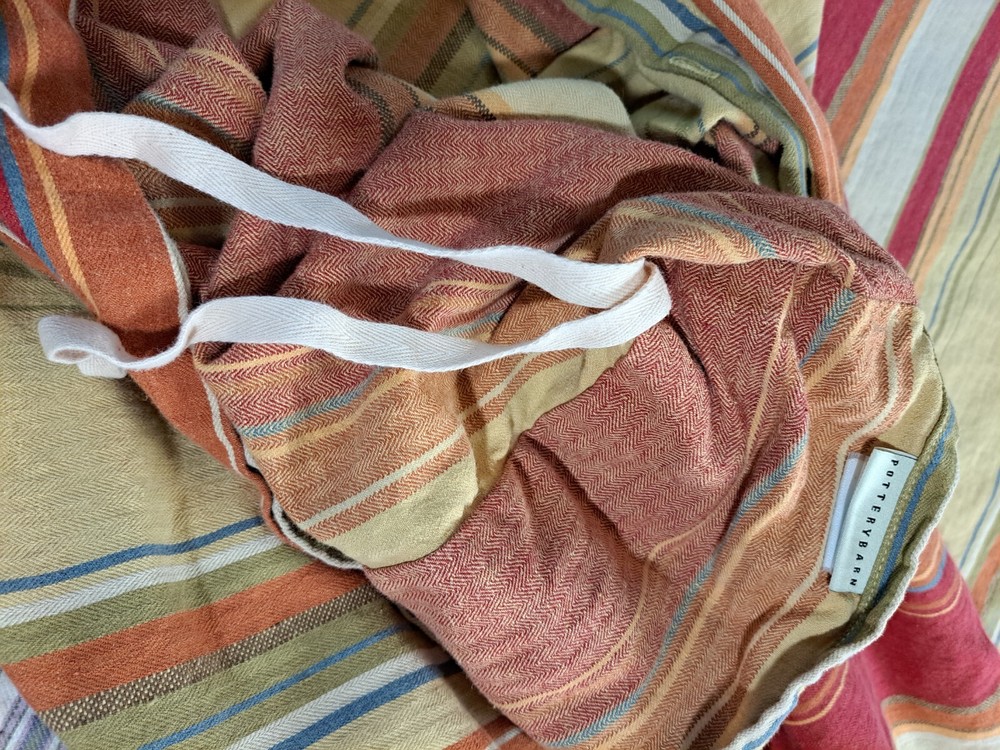 This Pottery Barn Duvet Cover is pre-owned and sold as is Light piling Reversible to the same pattern There are 2 areas on the duvet cover that have pulls/snags defects/ imperfections (see the last 2 photos) Size is L 88"× W 84" (approximate) The overall condition is very good PLEASE SEE PHOTOS FOR DETAILS/REFERENCE Computer monitor and lighting, etc.can show colors differently I DO NOT ACCEPT RETURNS Please take your time to see all the photos and read all descriptions. You may message if you have any questions or concerns about the item SHIPS TO U.S ADDRESSES ONLY THANK YOU FOR LOOKING AND FOR YOUR INTEREST!
