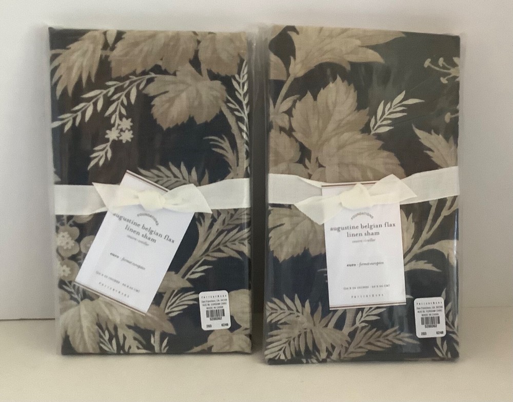 POTTERY BARN Set of 2 AUGUSTINE BELGIAN FLAX LINEN EURO SHAMS NEW WITH TAGS Lustrous, smooth and cool to the touch, these shams are woven from fine Belgian flax that gets softer with every wash. The floral print brings a tropical touch to your bed for summer and throughout the year. · Woven of 100% Belgian flax linen. · Linen woven from Belgian flax, constructed in China. · Shams feature an envelope closure. · Shams reverse to same. · Insert sold separately. · Machine wash. · Imported. Shams Euro: 26" x 26" CARE AND MAINTENANCE Machine wash in cold water, gentle cycle. Use only non-chlorine bleach when needed. Tumble dry on low heat; remove promptly. Warm iron as needed. Fast shipping within 24 hours. Items come from a smoke-free, pet-free home. Thank you for looking. Feedback from buyers: * "This is, by far, the best shopping experience I’ve had ever. Period. This seller went above and beyond to make sure she did every single thing possible to get me the sheet set I’d ordered. And then she followed up with a generous thank you. I’ve never had so much fun buying something!" * "The seller could not have made it any easier to make a purchase. The communication concerning the status of shipping and any follow up questions was quickly answered. This is what real customer service feels like. I would purchase from this seller again!" * "So so sorry for the belated feedback. This was the best seller I have ever encountered on eBay or anywhere for that matter, so kind, thoughtful, personable, accommodating. Went out of her way to get me the items even faster than ASAP w/out upcharge. Everything was pristine, beyond perfect, impeccably wrapped, I am so grateful and was thrilled to have the items needed for my first post COVID dinner party. She is a model for all sellers, her customer service is beyond compare, incredible actually."