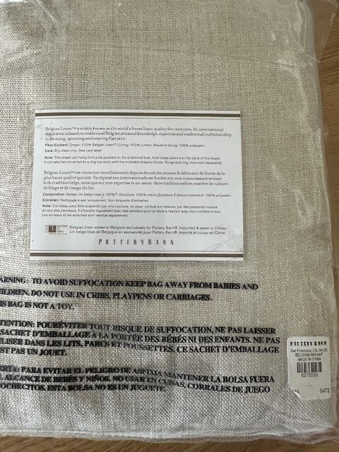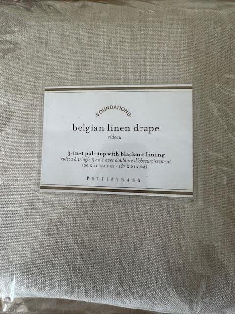 NEW Pottery Barn Set of 2 Belgian Linen Blackout Drape 50" x 84"in Natural 3-in-1 Pole Top Comes From A Clean Pet Free & Smoke Free Environment Drape - 100% Belgian Linen Blackout Lining - 100 Polyester Dry Clean