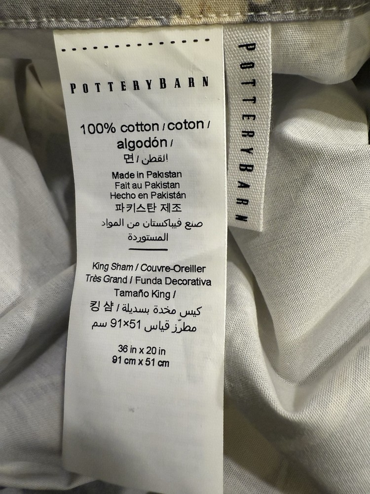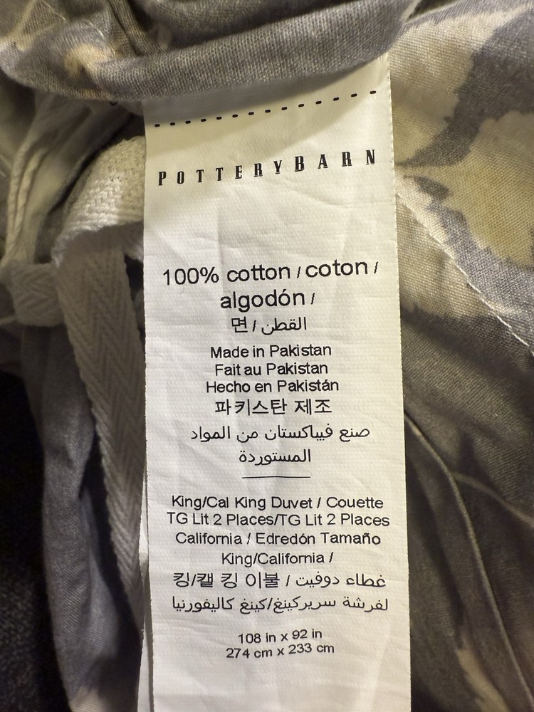 Excellent pre owned king duvet with a NEW WITHOUT tag king sham Add a touch of luxury and nature to your bedroom with this Pottery Barn Shadow Floral Percale Duvet Cover. The rectangular duvet cover is made of organic cotton with a thread count of 201-400 and features a beautiful multicolor floral pattern with amethyst character. The cover is machine washable and tumble dryable for easy care. This king/cal. king size duvet cover is perfect for both teens and adults who love the French country style and nature theme. The cover is adorned with buttons for easy closure and is ideal for one piece sets. The Pottery Barn brand guarantees quality and style, making this duvet cover a great addition to any bedroom.
