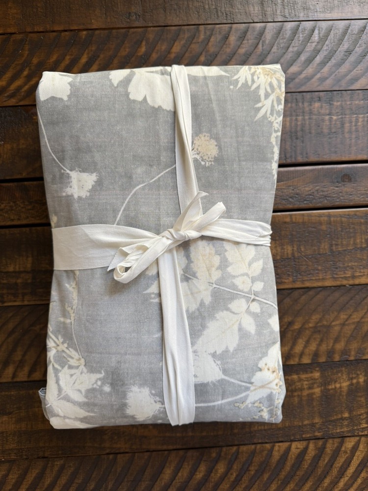 1 new without tags Add a touch of luxury and nature to your bedroom with this Pottery Barn Shadow Floral Percale Duvet Cover. The rectangular duvet cover is made of organic cotton with a thread count of 201-400 and features a beautiful multicolor floral pattern with amethyst character. The cover is machine washable and tumble dryable for easy care. This king/cal. king size duvet cover is perfect for both teens and adults who love the French country style and nature theme. The cover is adorned with buttons for easy closure and is ideal for one piece sets. The Pottery Barn brand guarantees quality and style, making this duvet cover a great addition to any bedroom.