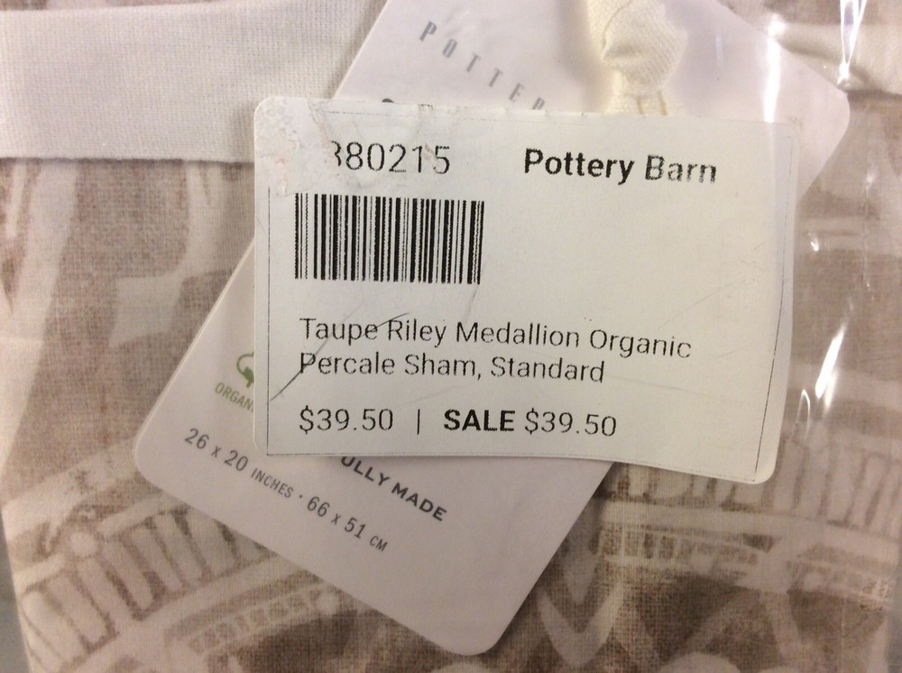 Pottery Barn Taupe Riley Medallion Organic Percale Sham Standard (One Sham)....