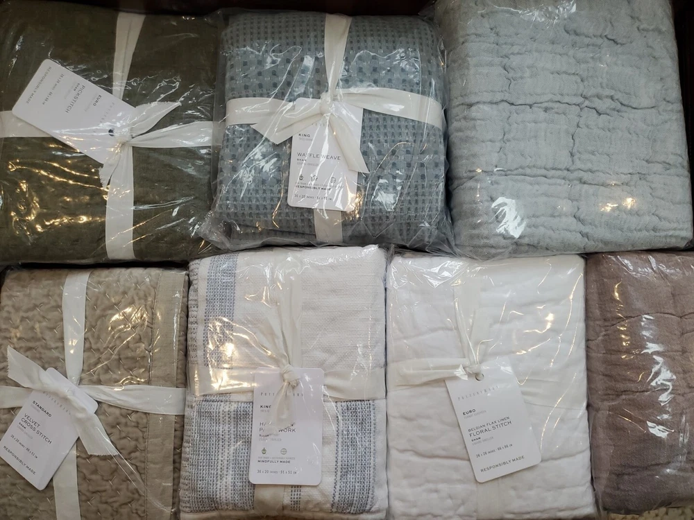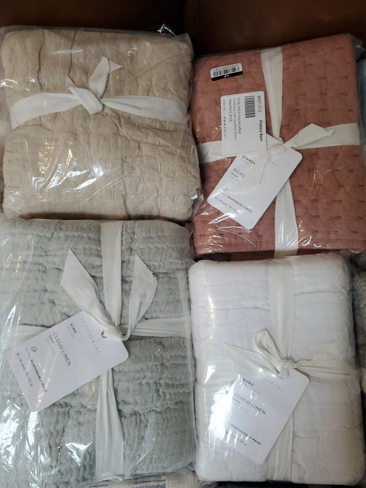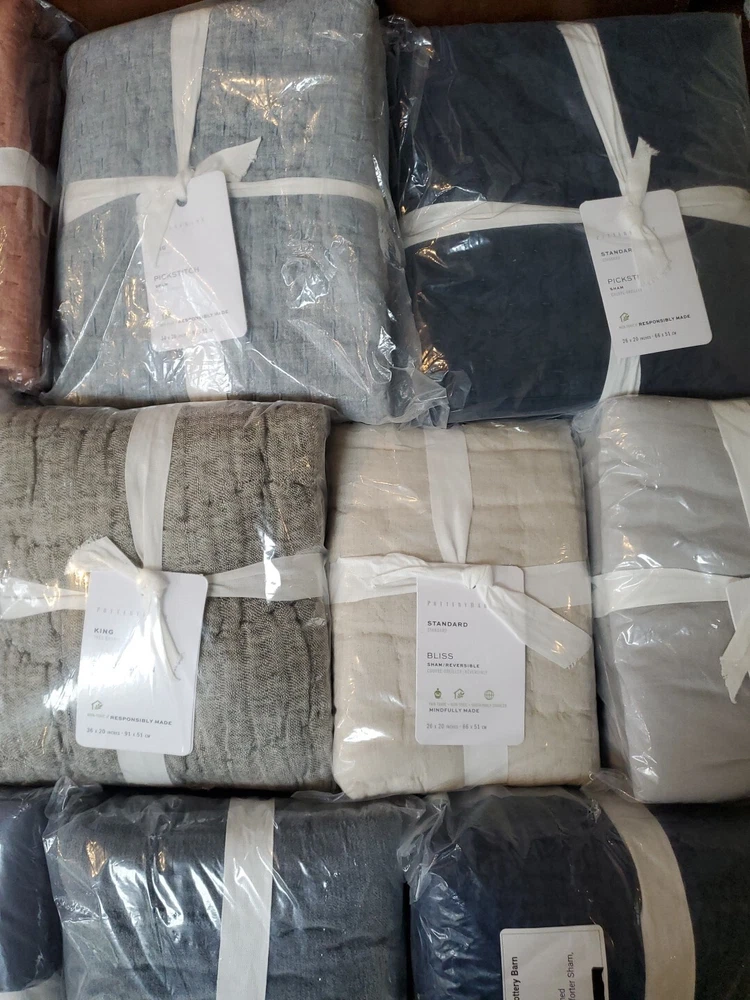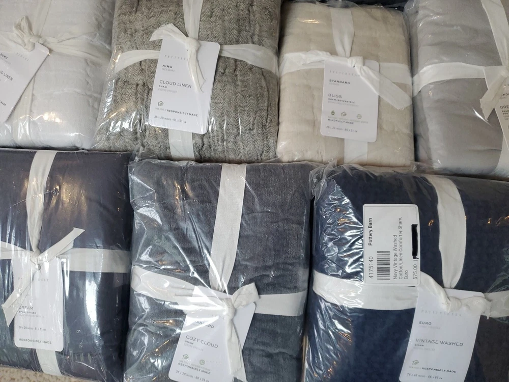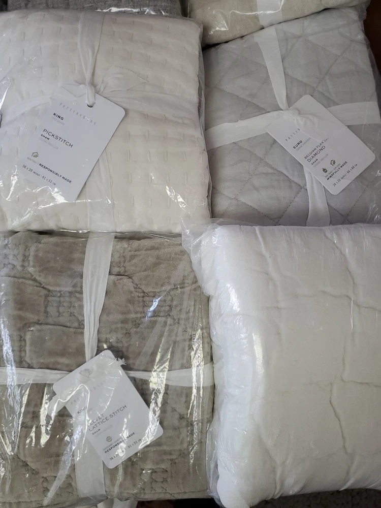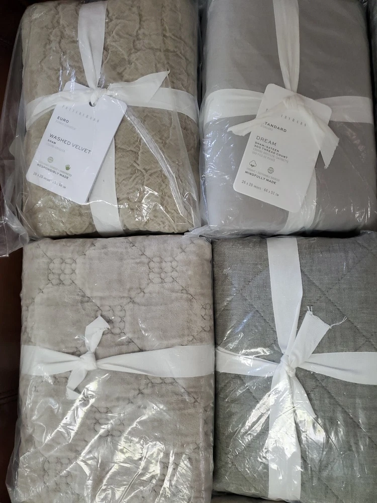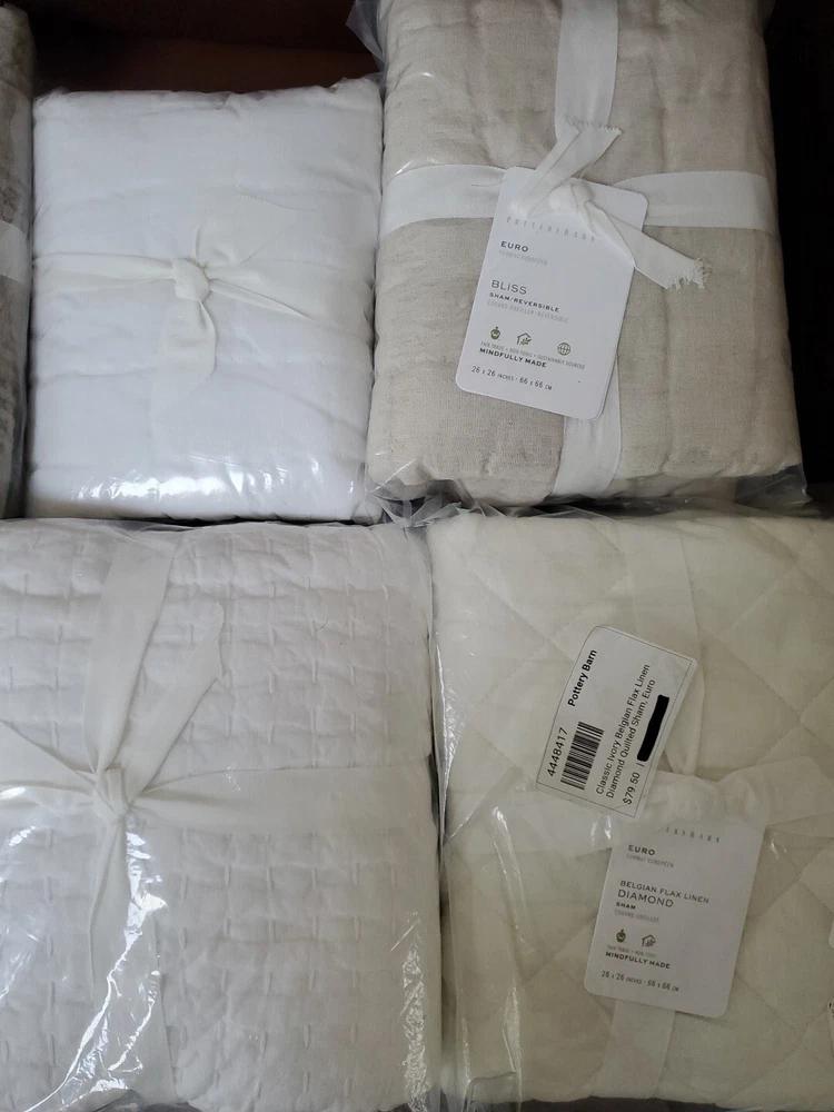 You Choose: Different Pottery Barn shams. New with tags. The options are: (There are now more varieties listed in the drop down menu than there are listed below) Pick-Stitch Handcrafted Cotton/Linen Quilted Sham, LODEN- King Pick-Stitch Handcrafted Cotton/Linen Quilted Sham, Light Gray- Standard Pick-Stitch Handcrafted Cotton/Linen Quilted Sham, Flax- Standard Pick-Stitch Handcrafted Cotton/Linen Quilted Sham, Brick- Standard Pick-Stitch Handcrafted Cotton/Linen Quilted Sham, Chambray- King Honeycomb CottonComforter Sham, CHAMBRAY- King Hawthorne handcrafted patchwork quilted Sham King, Chambray Hawthorne handcrafted patchwork quilted Sham Euro, Chambray Hawthorne handcrafted Patchwork Quilted Sham, Standard, Chambray Clayton handcrafted quilted Shams, King, Blue, set of 2 Cozy Cloud handcrafted quilted sham Euro, Pale Lilac Cozy Cloud, Quilted Sham, Standard, Steel Blue White Belgian flax linen, floral stitch sham Euro Cloud handcrafted cotton/linen quilted sham, King, Chambray Cloud handcrafted cotton/linen quilted sham, Euro, White Cloud handcrafted cotton/linen quilted sham, Standard, White Cloud handcrafted cotton/linen quilted sham, King, Loden Cloud handcrafted cotton/linen quilted sham, King, Gray Cloud handcrafted cotton/linen quilted sham, Standard, Flax Bliss, Standard, White Bliss, Quilted, Euro, Flax Dream Brushed Cotton comforter sham, Standard, Mirage Dream Brushed Cotton comforter sham, King, Steel Blue Belgian Flax Linen Diamond Quilted, Euro, White Belgian Flax Linen Diamond Quilted, King, Soft Gray Belgian Flax Linen Diamond Quilted, Euro, Soft Gray Belgian Flax Linen Diamond Quilted, Euro, Classic Ivory Belgian Flax Linen Diamond Quilted, King, Loden Penelope Applique Handcrafted Quilted Sham, King Tencel Lyocell Sham, Gray Mist, Euro Washed Velvet Handcrafted Quilted Sham, Euro, Taupe Washed Velvet Handcrafted Quilted Sham, Standard, Loden Velvet Lattice, King, Gray Velvet, Sham Each package contains one sham. Buy more in same order and save! Returns are accepted but the item must be returned within 30 days of the original delivery date. When we receive the returned item, inspect it, and it is found to be in the same condition that we shipped it in (brand new, unused, and/or in the original packaging with tag attached) then we will request a cancellation of the transaction through ebay. Once the item is cancelled, your refund will be given. Refunds are less original cost to ship the product, unless the mistake was made by the seller. Returns that have any signs of use or handling will NOT be accepted and no refund will be given. Check out my page for more Pottery Barn and West Elm items.