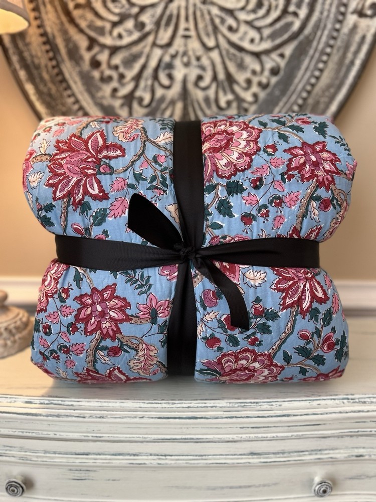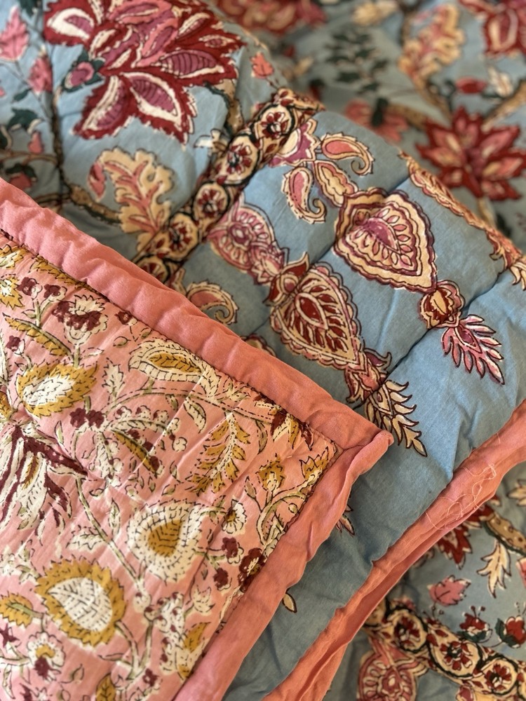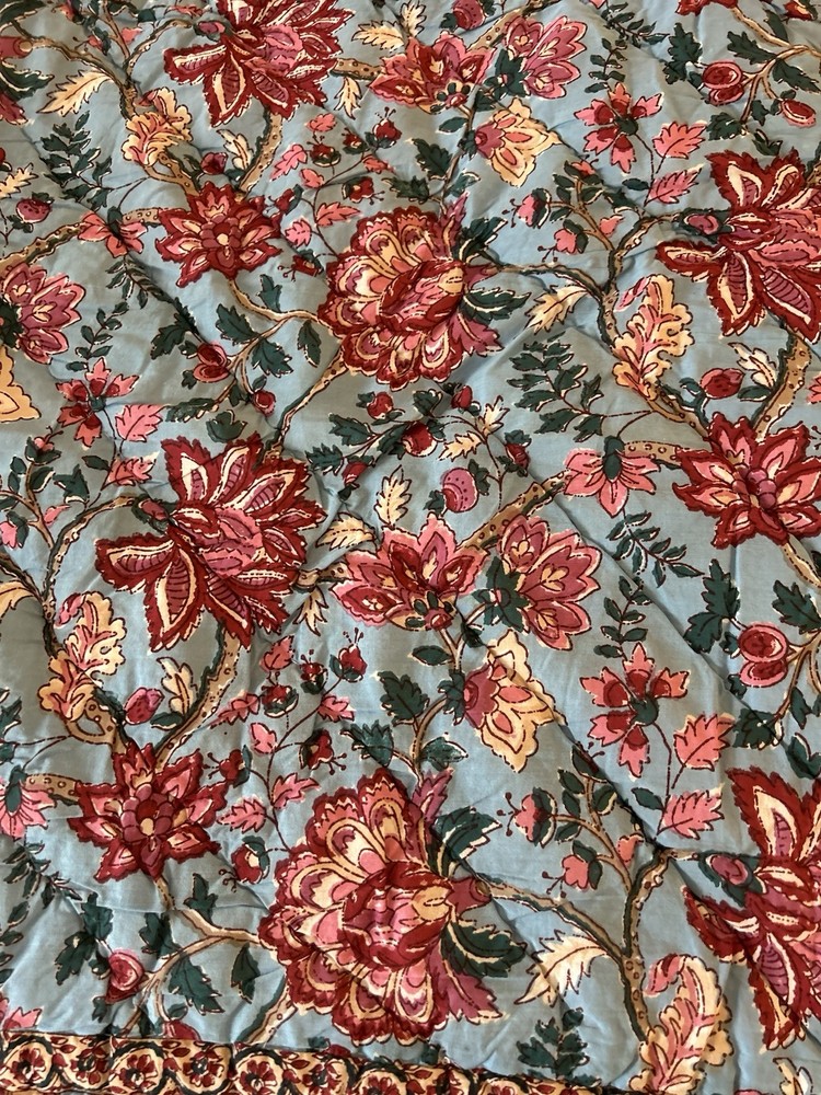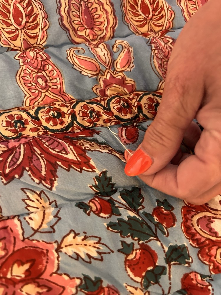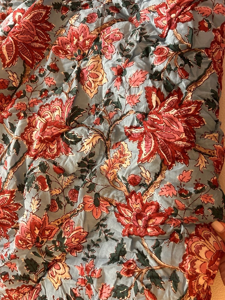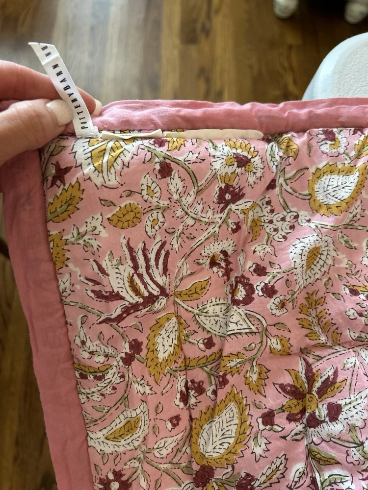 Pottery Barn Shannon Reversible KING/CAL. KING Quilt Pink Multi PRE-OWNED READ Size king/cal. king - Pink multi - Pre-owned, there is a spot on the quilt that has became slightly crunchy from the quilt staying in one spot of the dryer to long. Please reference photo #2. There is also a pull on the quilt as well. - Manufacturing tags have been removed
