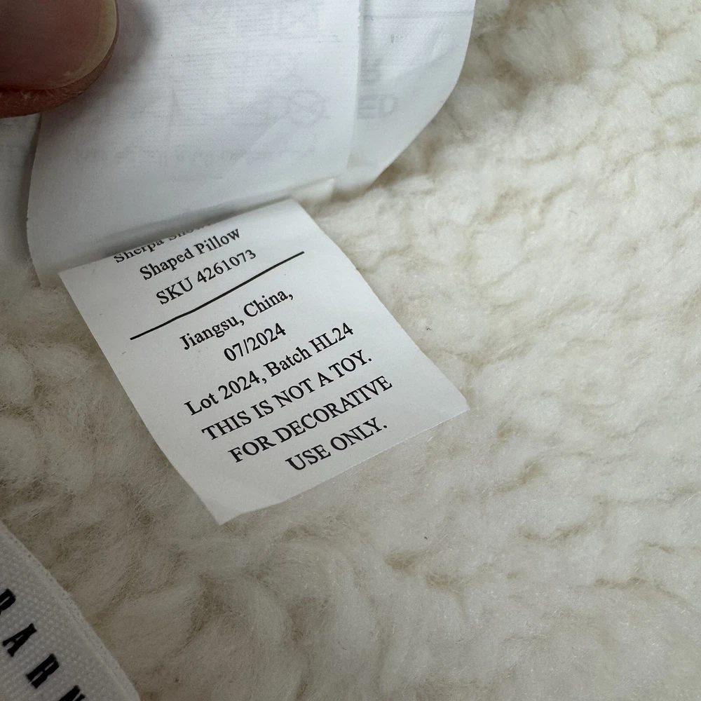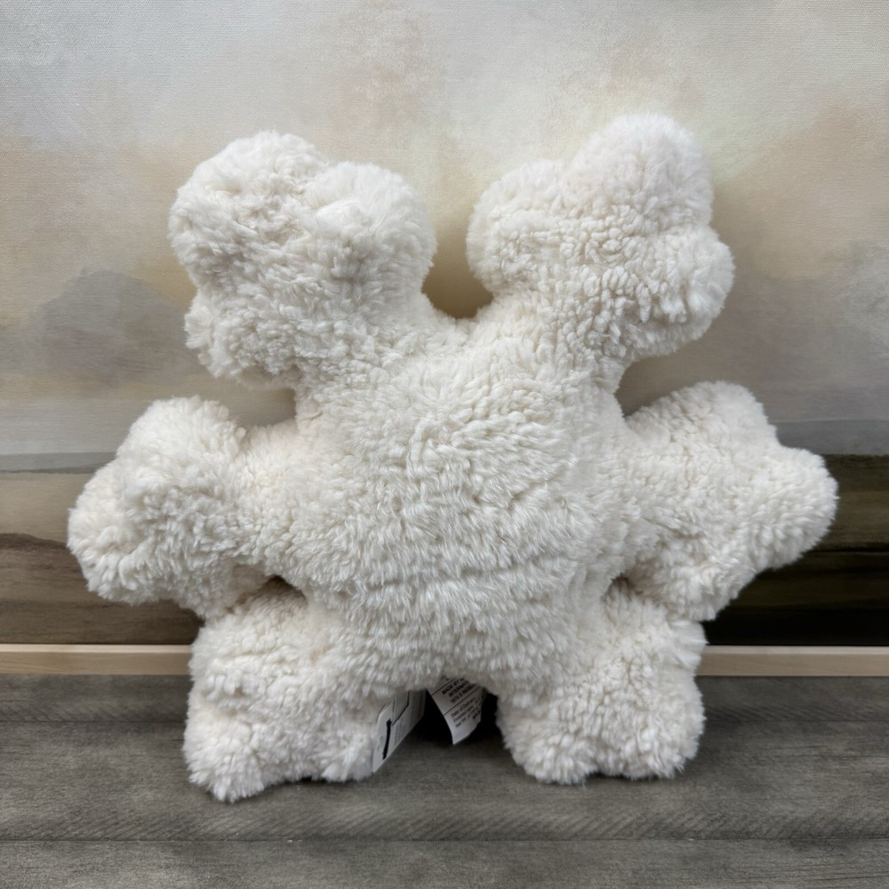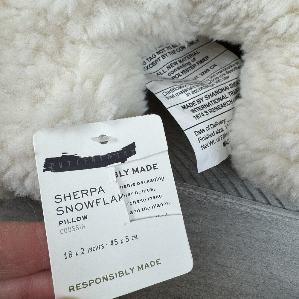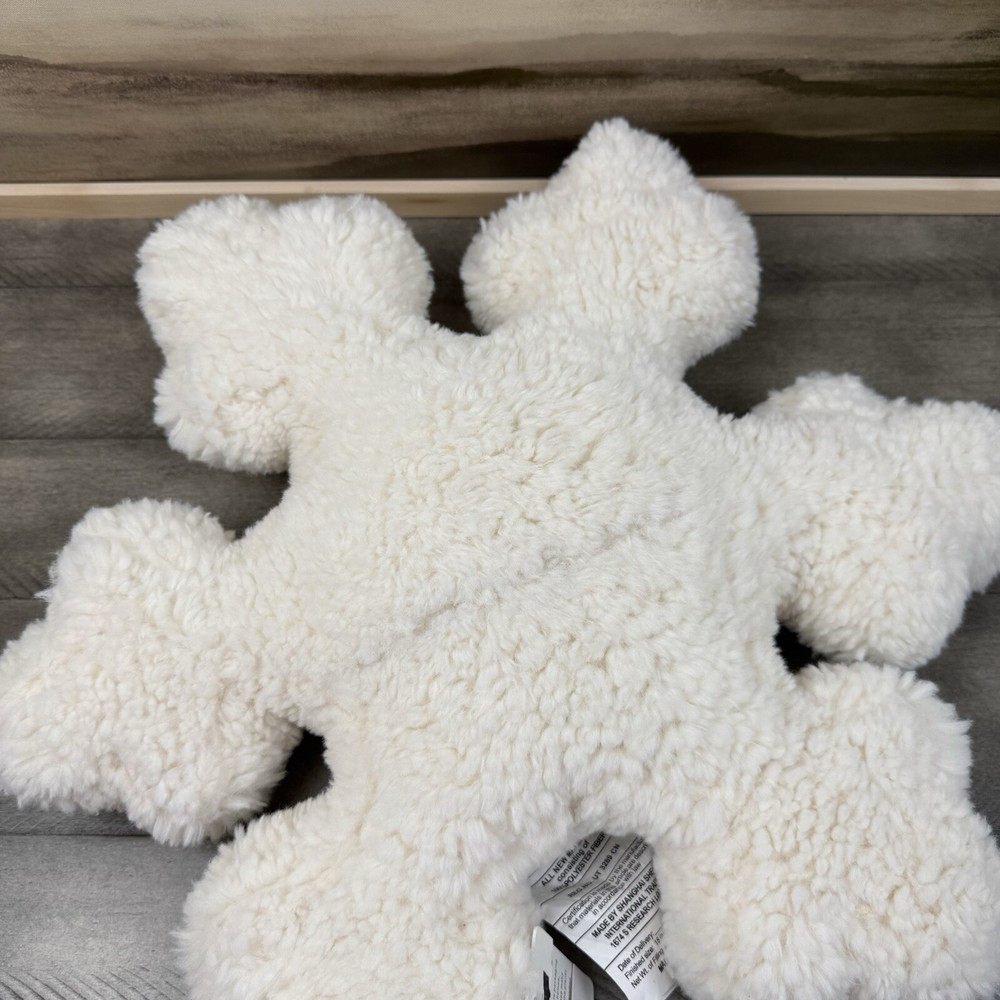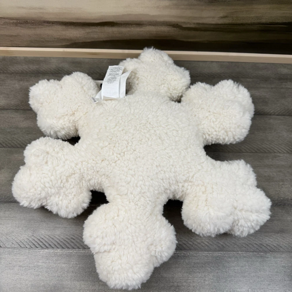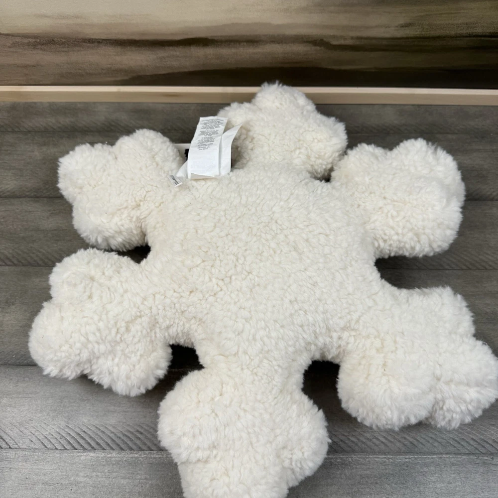 Pottery Barn Sherpa Snowflake Shaped Decorative Throw Pillow Christmas Flaw Read New with tags item / open box - item ships without manufacturer packaging There are some markings / cuts in the external tag as pictured Please note, there is a small dark line in the middle of the pillow on one side Dimensions: 18” sq