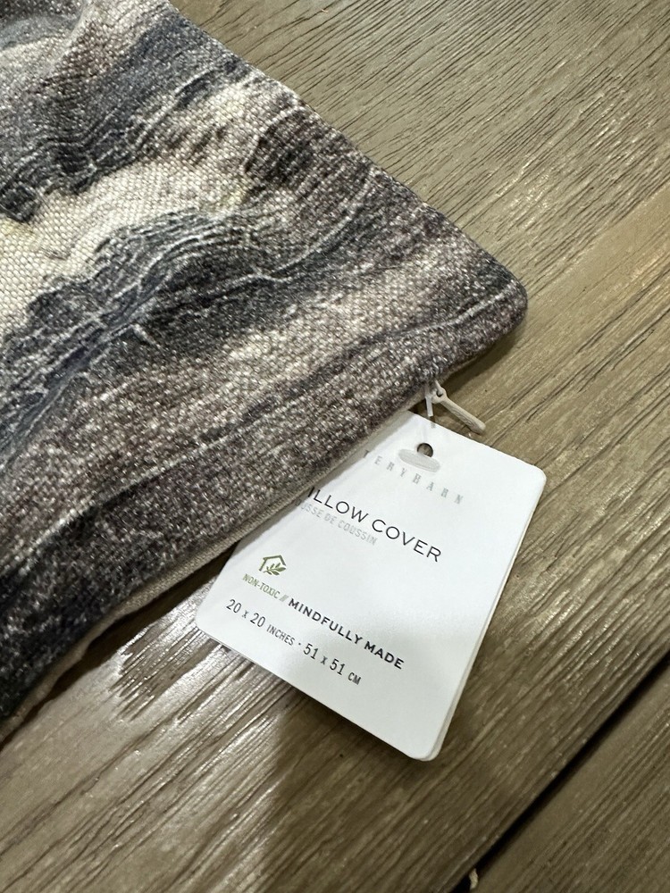 You are purchasing one Pottery Barn Sienna Paint Pillow Cover Color on the tag reads blue but it is mostly grays New with tags size is 20" sq.